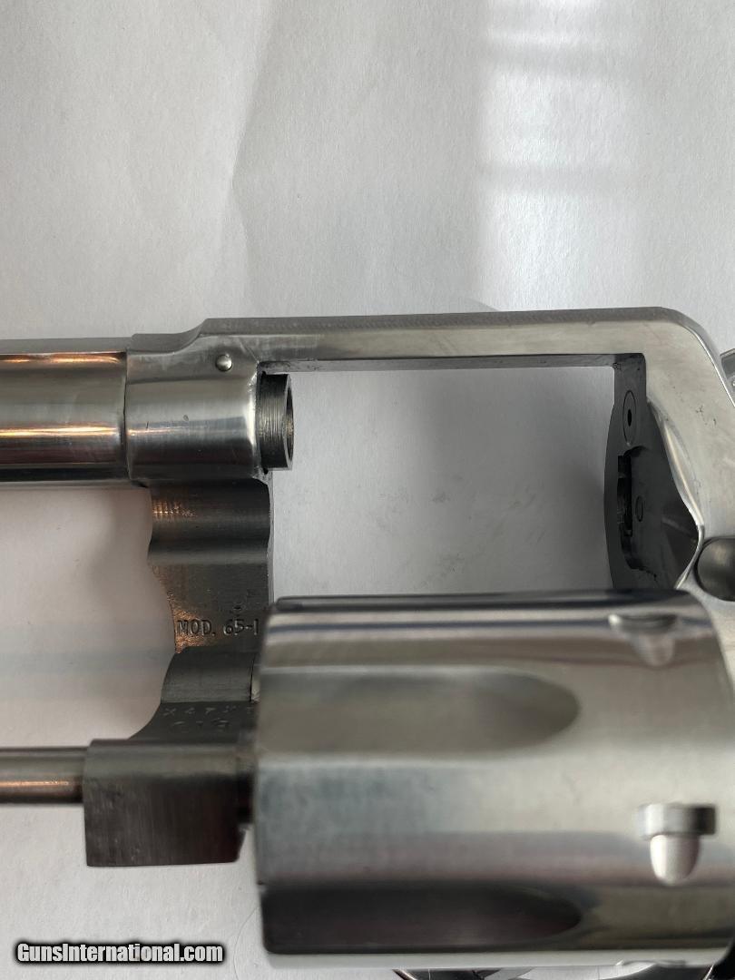 Description: 65-1 with pinned barrel, recessed cylinder, stainless steel hammer and trigger assy. four inch barrel, very good condition , locks uptight SOLD Handgun Caliber: .357 Magnum |