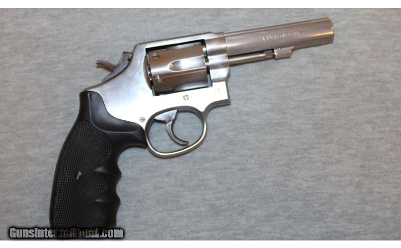 Description: Very good condition, light finish wear, small nicks and scratches, comes with original box. S&W magnum revolver, 4" heavy barrel, stainless finish, fixed sights, 6 shot fluted cylinder, checkered hammer & cylinder latch, and checkered hard rubber grips. A good choice for home defense. .357 Magnum SOLD Chambers: Revolver Metal Condition: Very good Bore Condition: Bright Barrels: 4 Triggers: Double and single action Butt Pad: Hard rubber grips Sights: "Fixed rear channel, ramp front sights Item Location: Council Bluffs, IA |