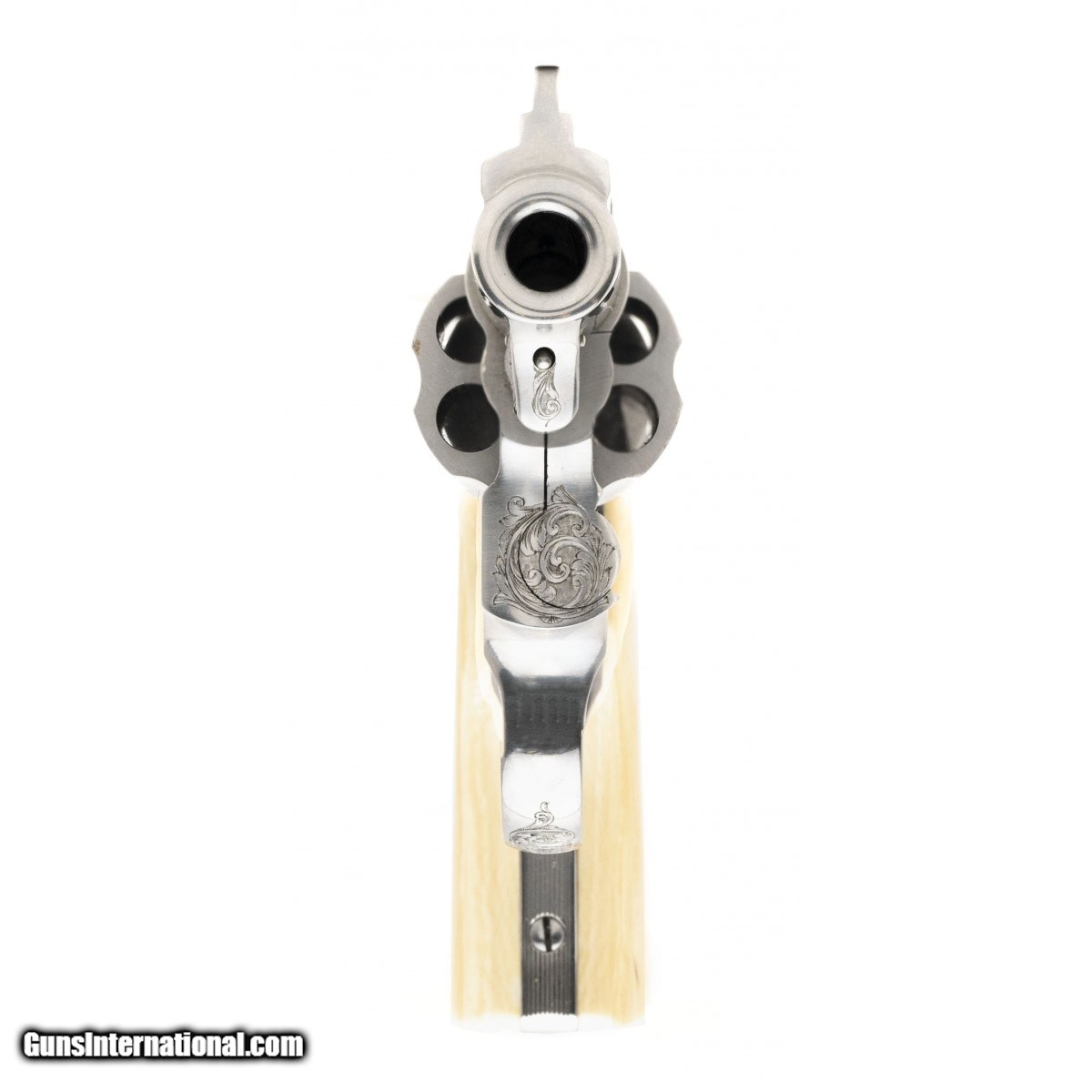 Description: " Outstanding custom engraved stainless steel snubnose revolver. Finely engraved by Italian master Paolo Barbetti in a delicate scroll. Has genuine ivory grips. A beautiful piece in excellent condition. SOLD |