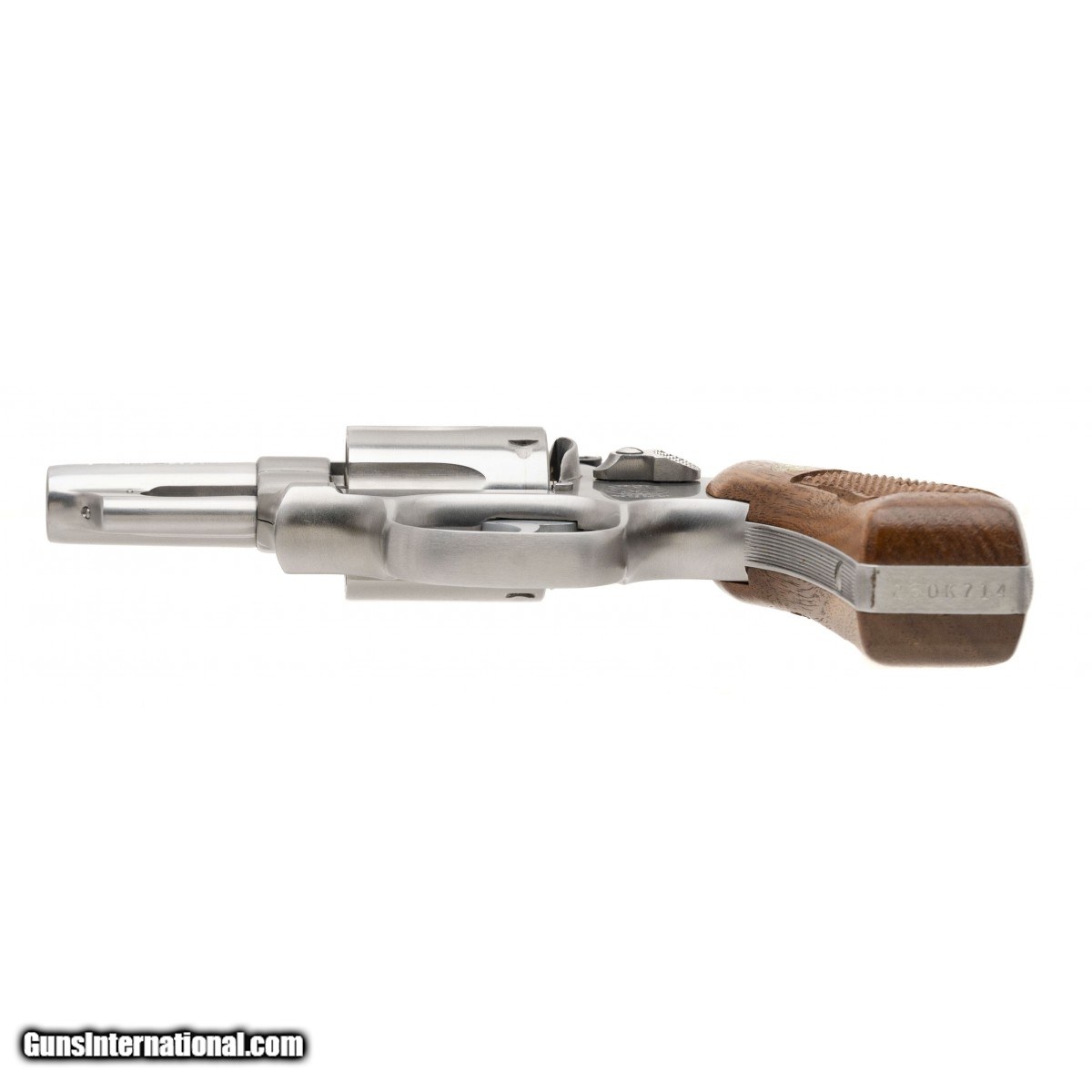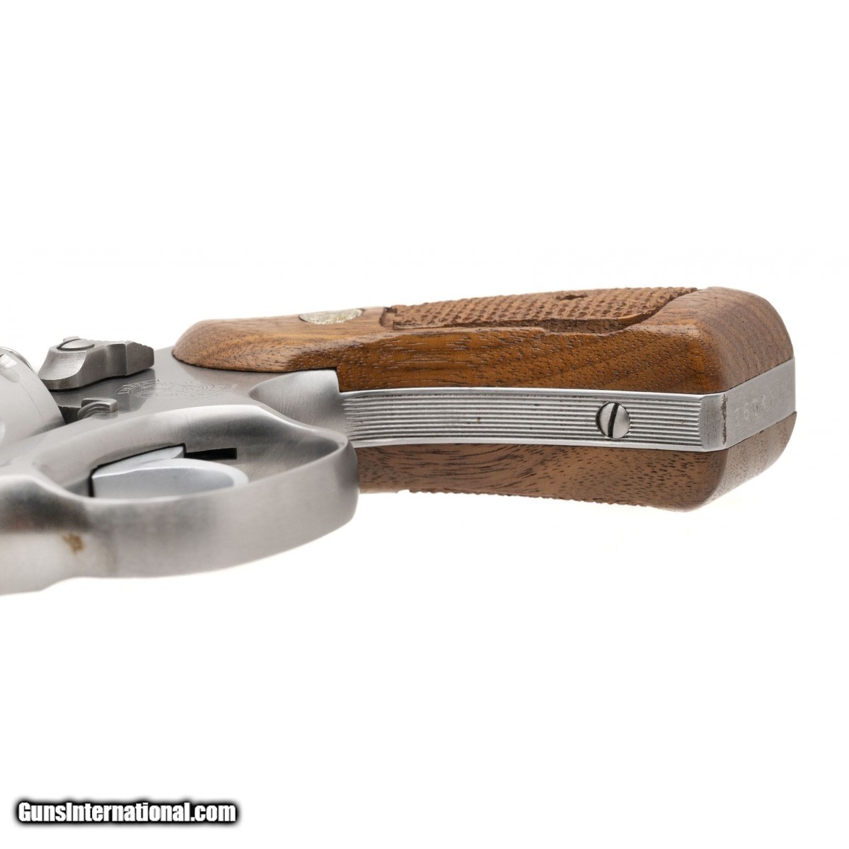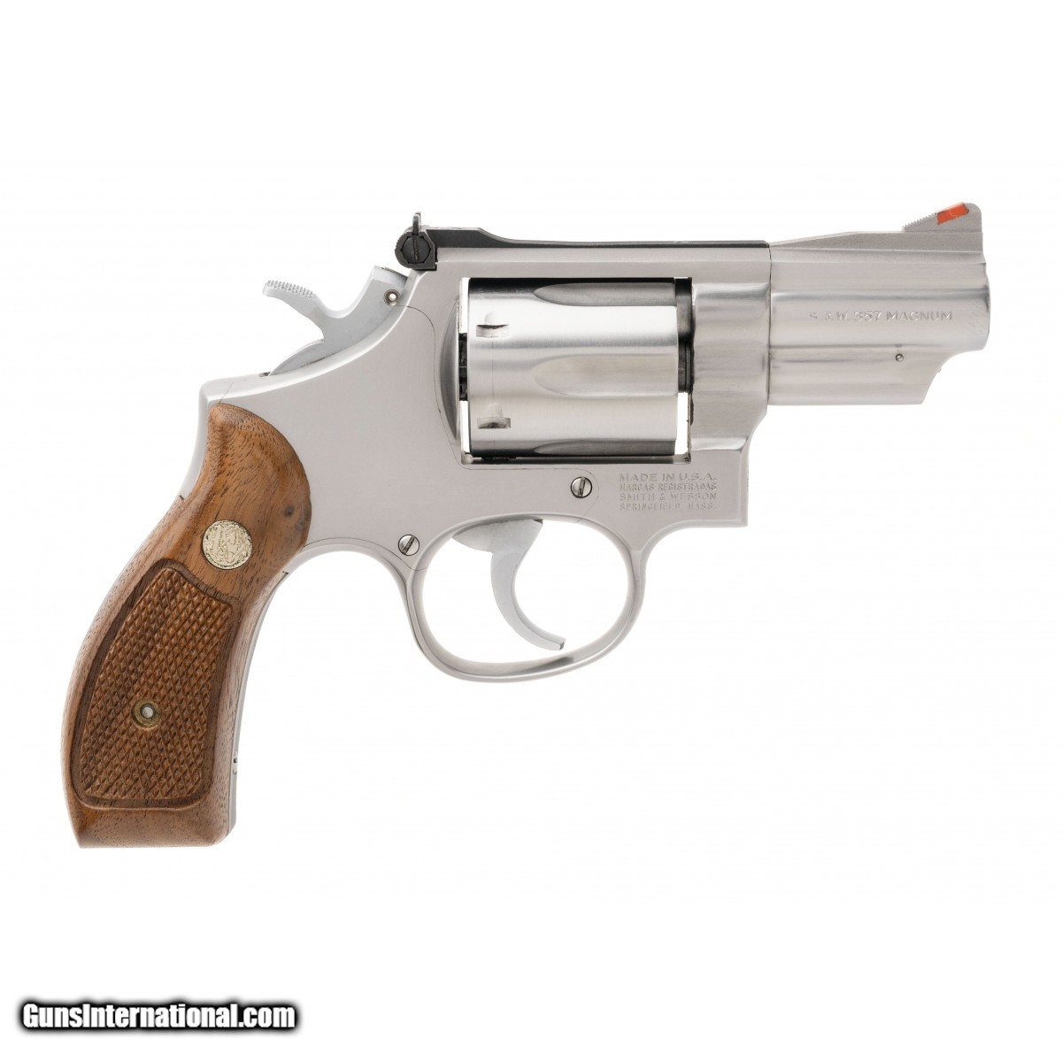 Description: "SN: 260K714. Made in 1982. .357 Magnum with a 2.5"" snub nose barrel. Bore is in excellent condition. S&W double action stainless steel revolver. Metal is in excellent condition. Checkered wood grips are in very good condition with light wear. Overall condition is excellent. Comes with box. (Consignment) SOLD |