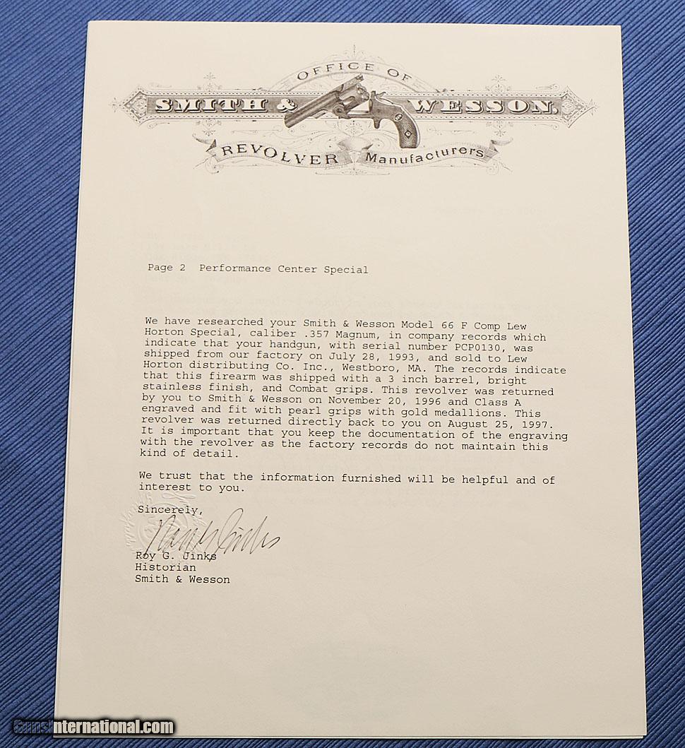 S O L D - - - Smith & Wesson - Lew Horton - Performance Center - Factory Class A Engraved - Model 66-3