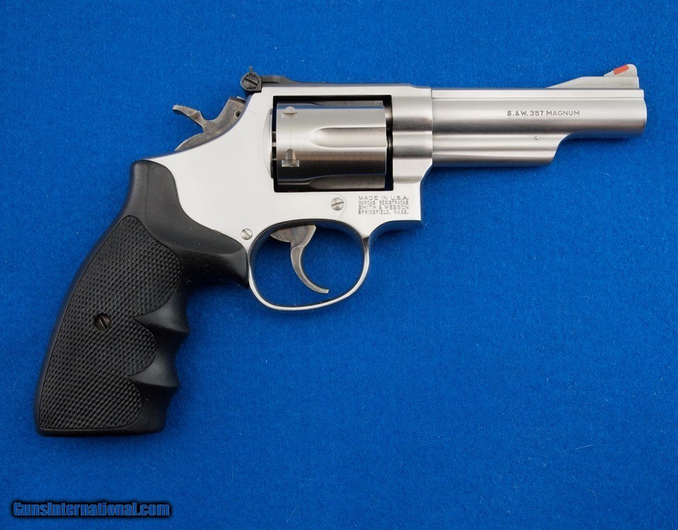 Description: S&W 66-4 Combat Magnum Stainless .357 Mag, 4" bbl, bright shiny bore, good rifling, serrated ramp front sight, adjustable white outline notch rear sight, stainless finish, and black textured grips. MFG 1994 - 1997. Add 3% for Credit Card Shipping $25.00 SOLD |
