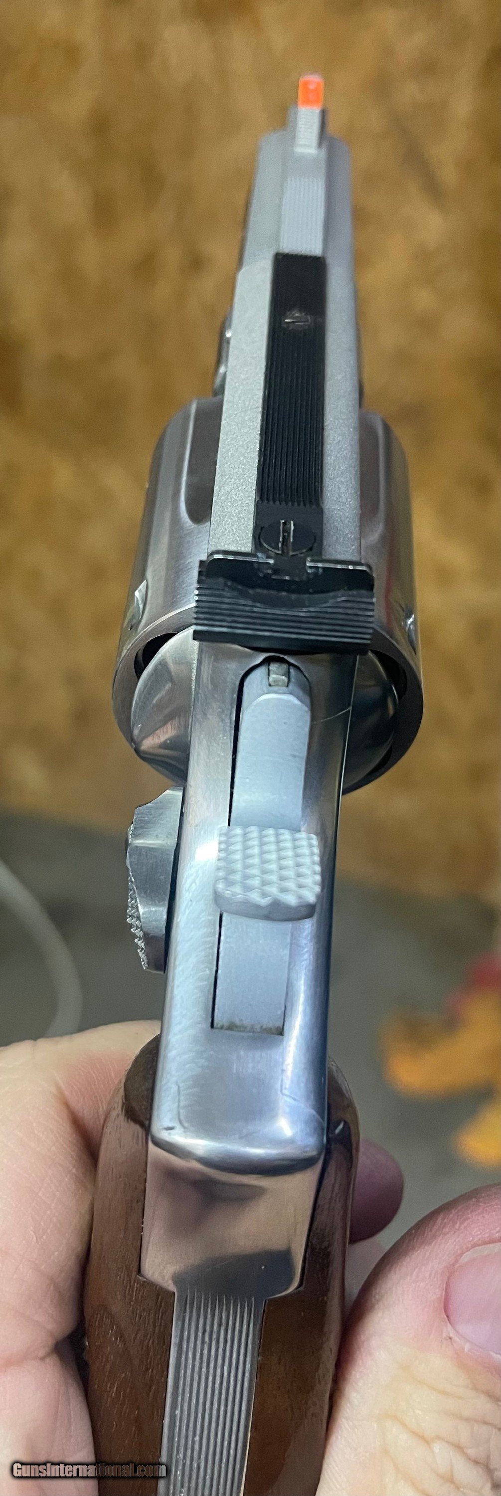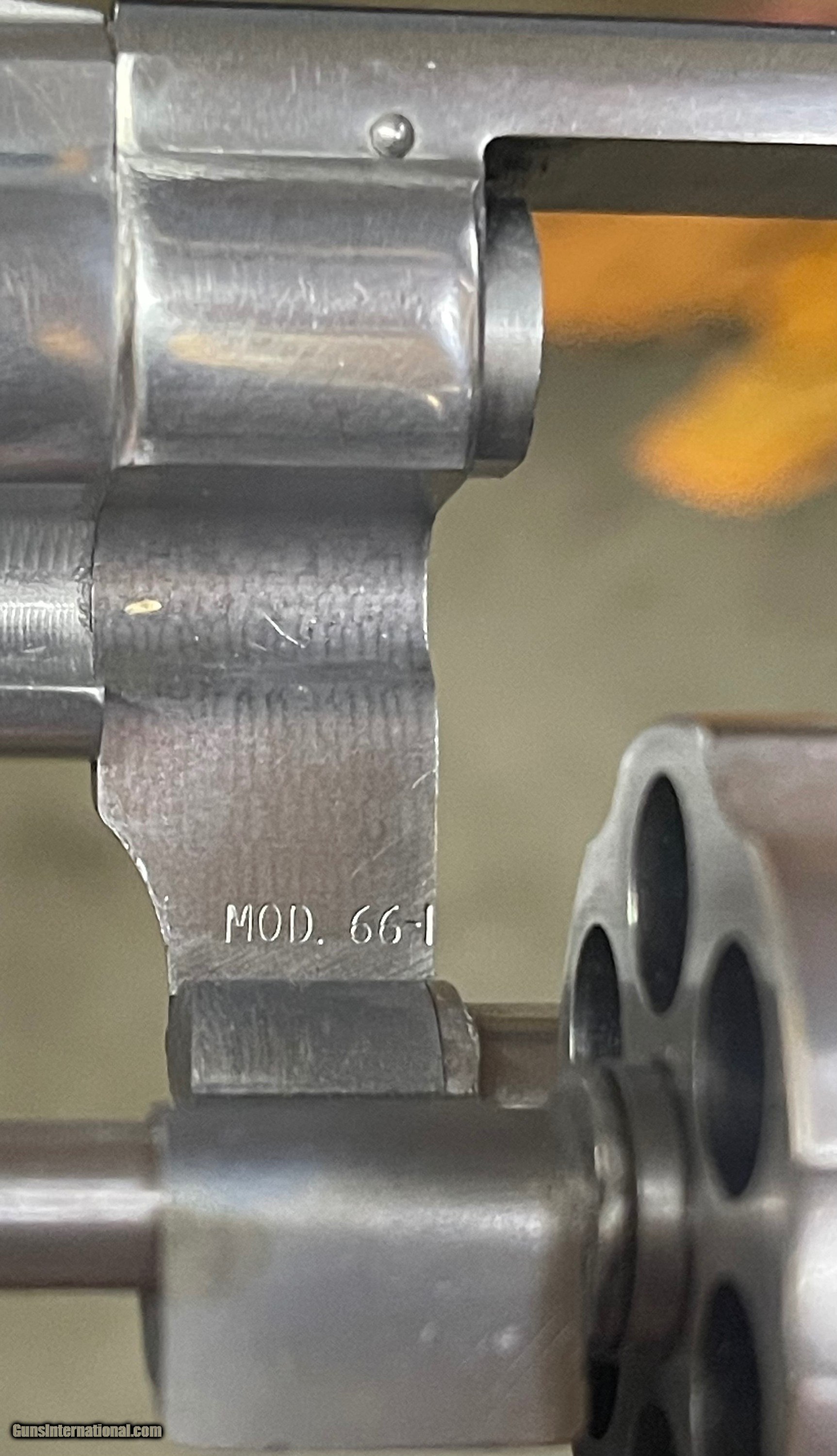 Description: A really nice 66!! This gun features a 2 1/2 inch pinned barrel, recessed cylinder, target sights (red ramp only, and wood grips. Very little wear. Has a box with some paper and tools. Does NOT look like an original label. Please email with questions. Shipping and insurance included. Cards add 3% SOLD Manufacturer: Smith and Wesson Model: 66-1 Barrel Length: 2 1/2 inch Condition: Used Metal Condition: Excellent Wood Condition: Excellent Bore Condition: Excellent Finish: Stainless Sights: Target Item Location: 37075 |