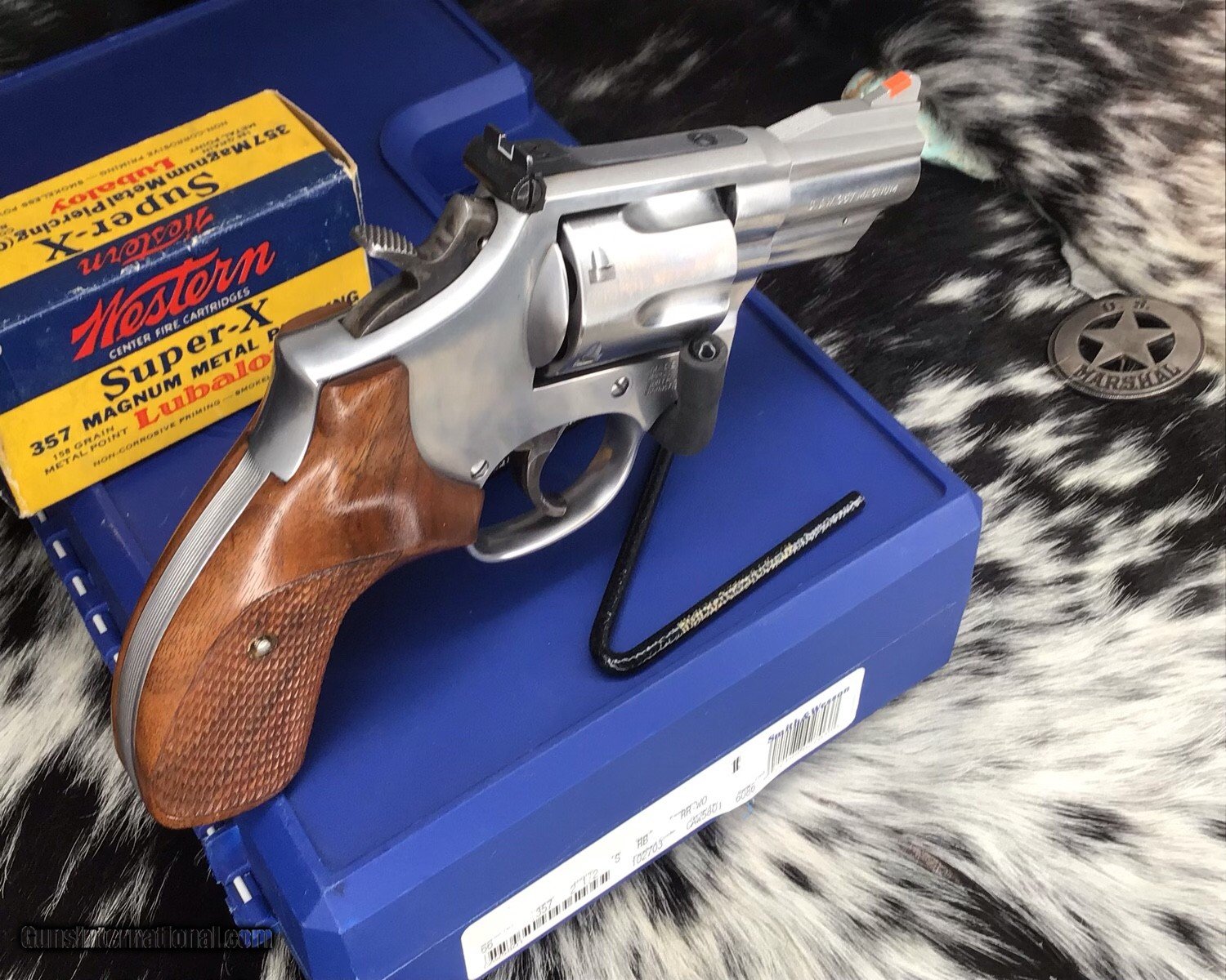 Description: Smith and Wesson 66-4 K frame Combat magnum wearing a 2.5 inch barrel with a Red front insert and White outline rear adjustable sights. Herrets Walnut Combat Boot grips. In factory numbered to gun box with manual. 98% condition and in excellent top working condition. Stainless Steel construction for easy maintenance and long life. Gun appears to have been fired very little. From an estate of the long time owner and Smith and Wesson collector. Add 3% if paying with credit card. God Bless America from a proud American, and a Viet Nam Vet , thankful for our freedoms.. paid for by the Blood ,Sweat and Tears of our brave men and women in uniform. Ten Below Firearms is a Veteran owned and operated business. We specialize in out of production models of high quality firearms. We love to ship! If you are out of state or can't make it to our store, just give us a call! Handguns normally ship for $30 and Long guns for $40 to $55 for extra length long guns. That's 2-3 day USPS Priority shipping, Delivery conformation and with tracking number. Optional Postal insurance is additional $1.50 per $100 and highly recommended. SOLD Handgun Caliber: .357 Magnum Manufacturer: Smith and Wesson Model: 66-4 Serial Number: CAW5801 Barrel Length: 2.5 Chambers: 6 Condition: Excellent Metal Condition: Excellent Wood Condition: Very good Bore Condition: Excellent Finish: Stainless steel Sights: Adjustable |