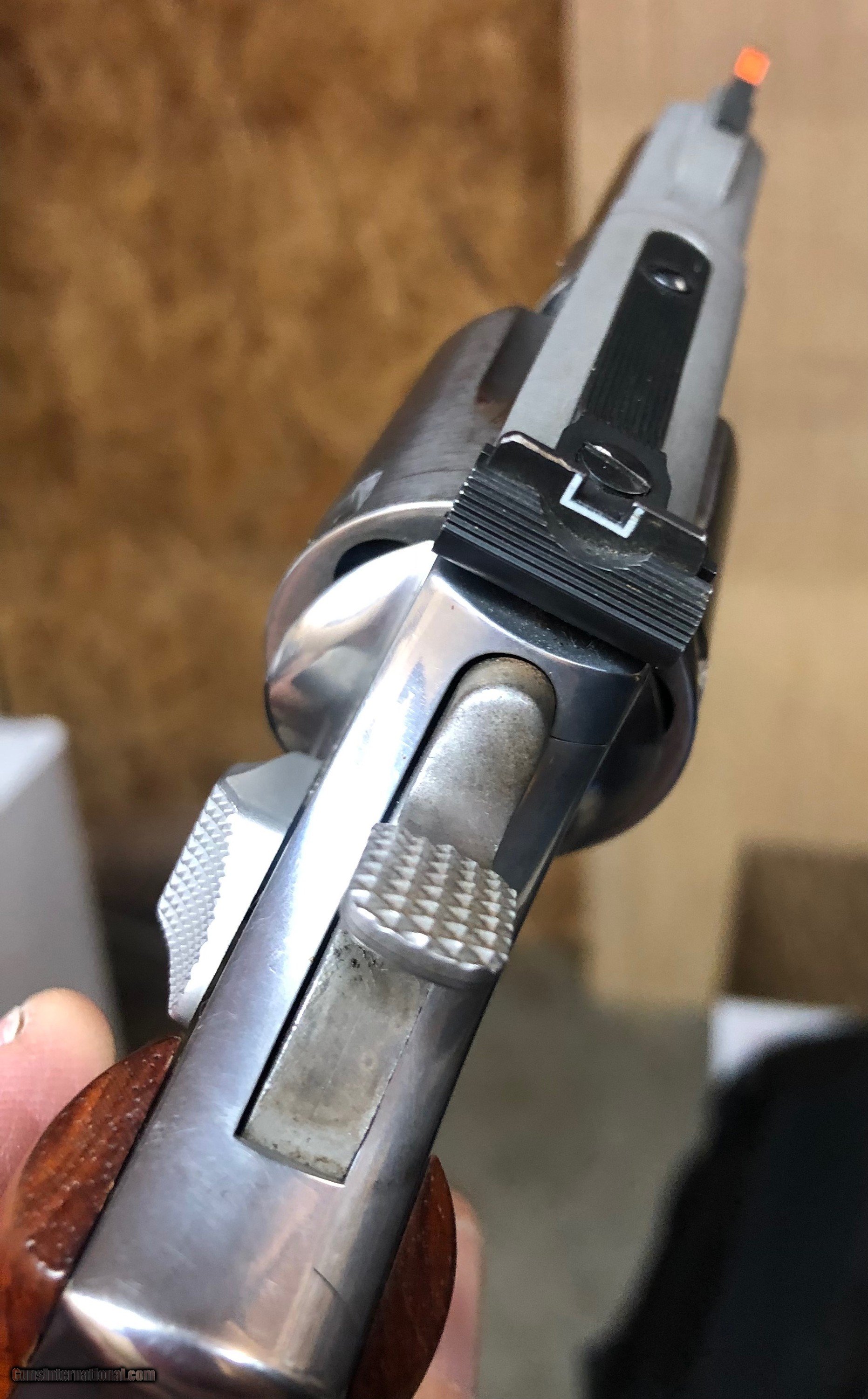 Description: This "dash 5" 66 is the last of the prelock 66's. Stainless finish, target sights, and aftermarket combat grips. Gun has signs of wear but still clean. Please email with questions. Shipping included (west coast add $75). Cards add 3% SOLD Manufacturer: Smith and Wesson Model: 66-5 Barrel Length: 2 1/2 inch Condition: Used Metal Condition: Excellent Wood Condition: Excellent Bore Condition: Excellent Action: Da, sa Finish: Stainless Sights: Target Item Location: 37075 |