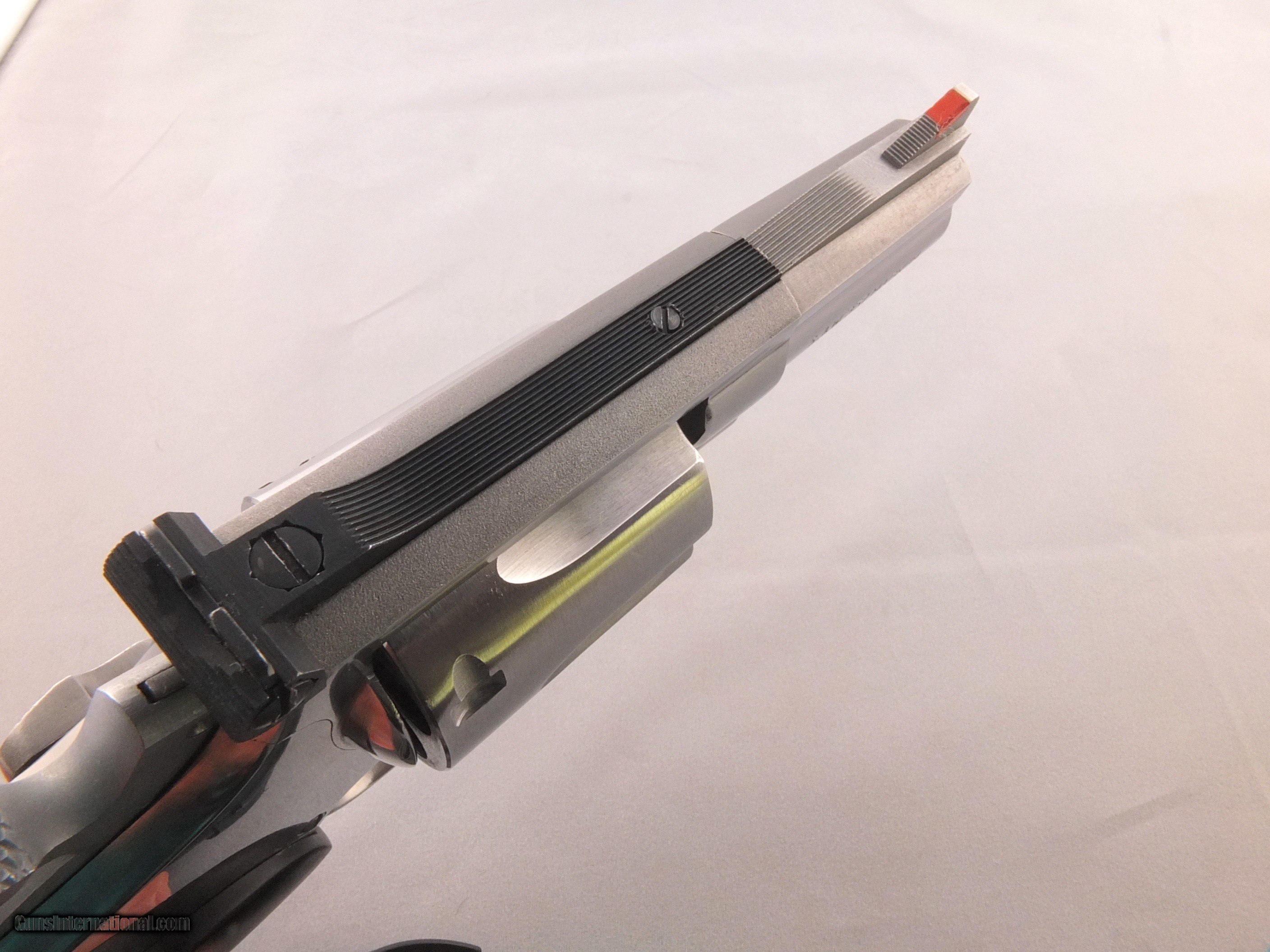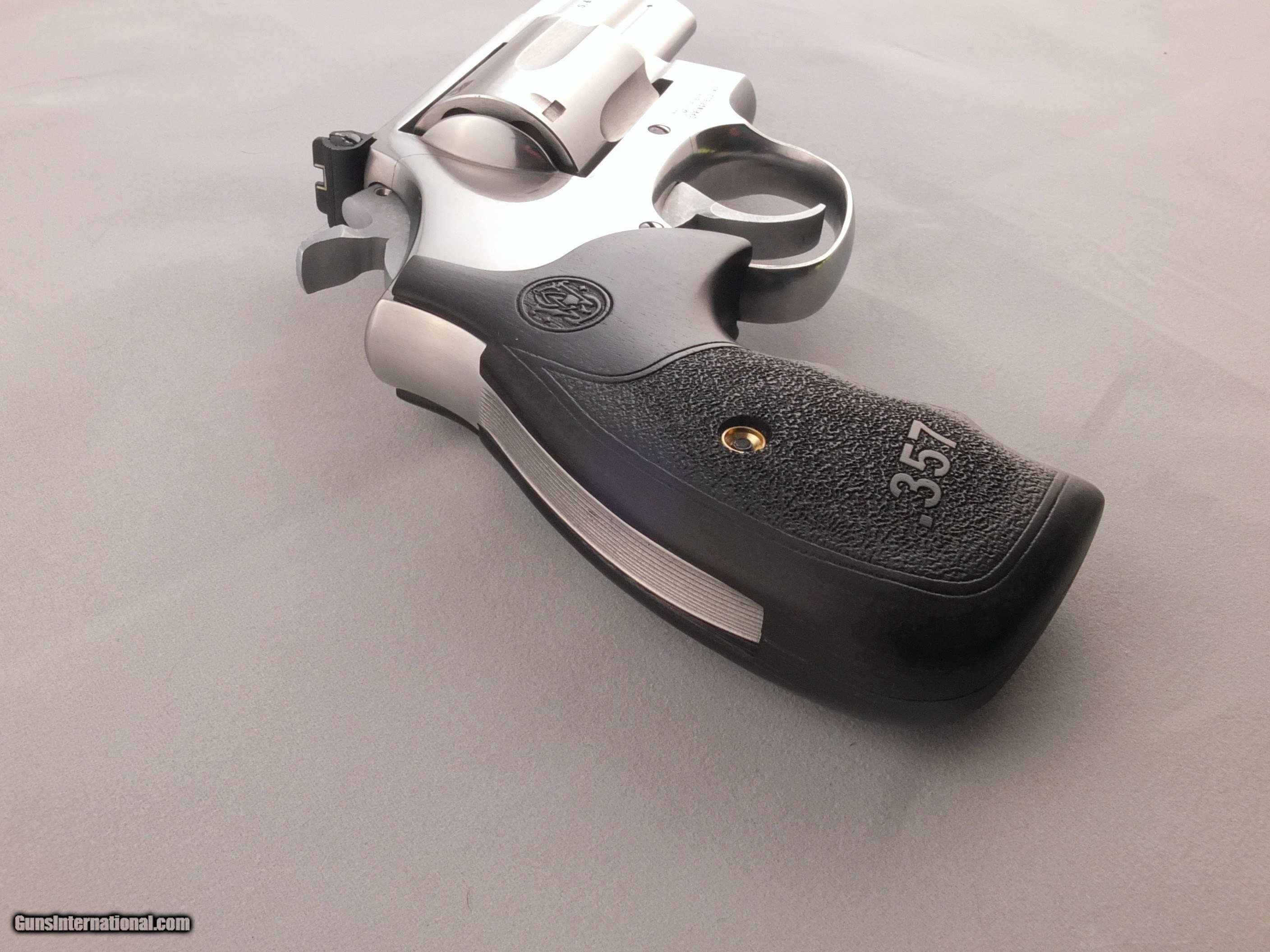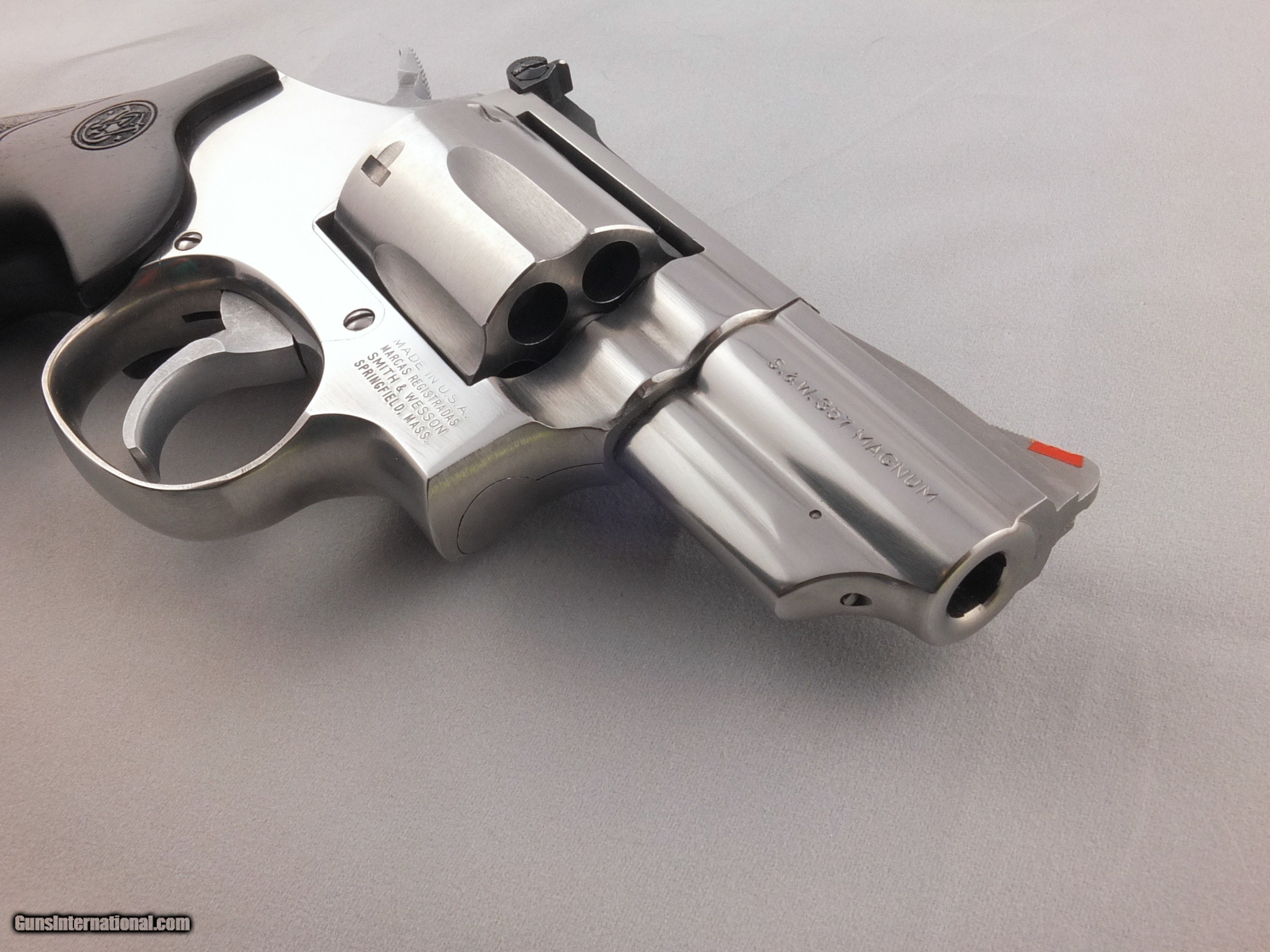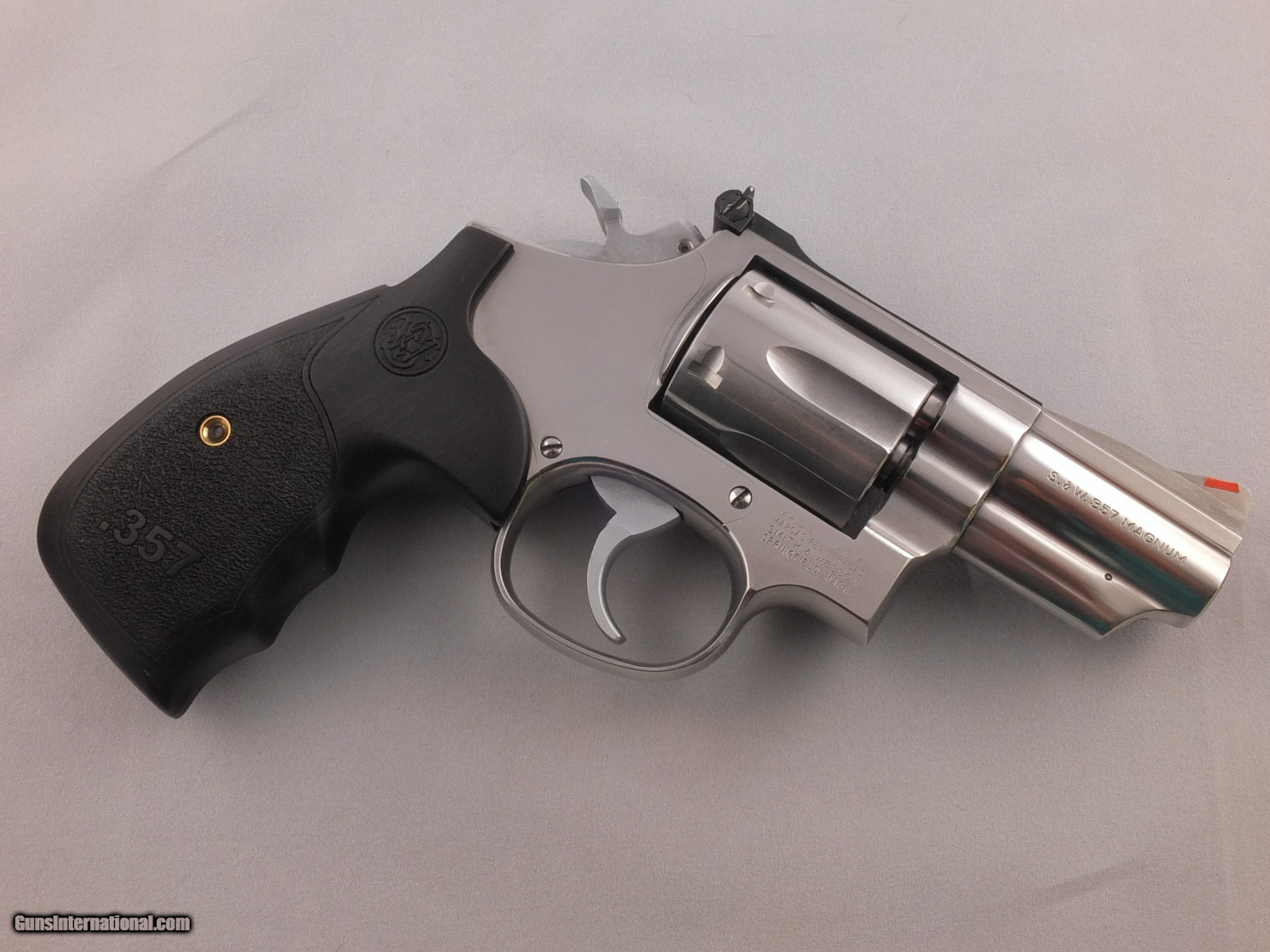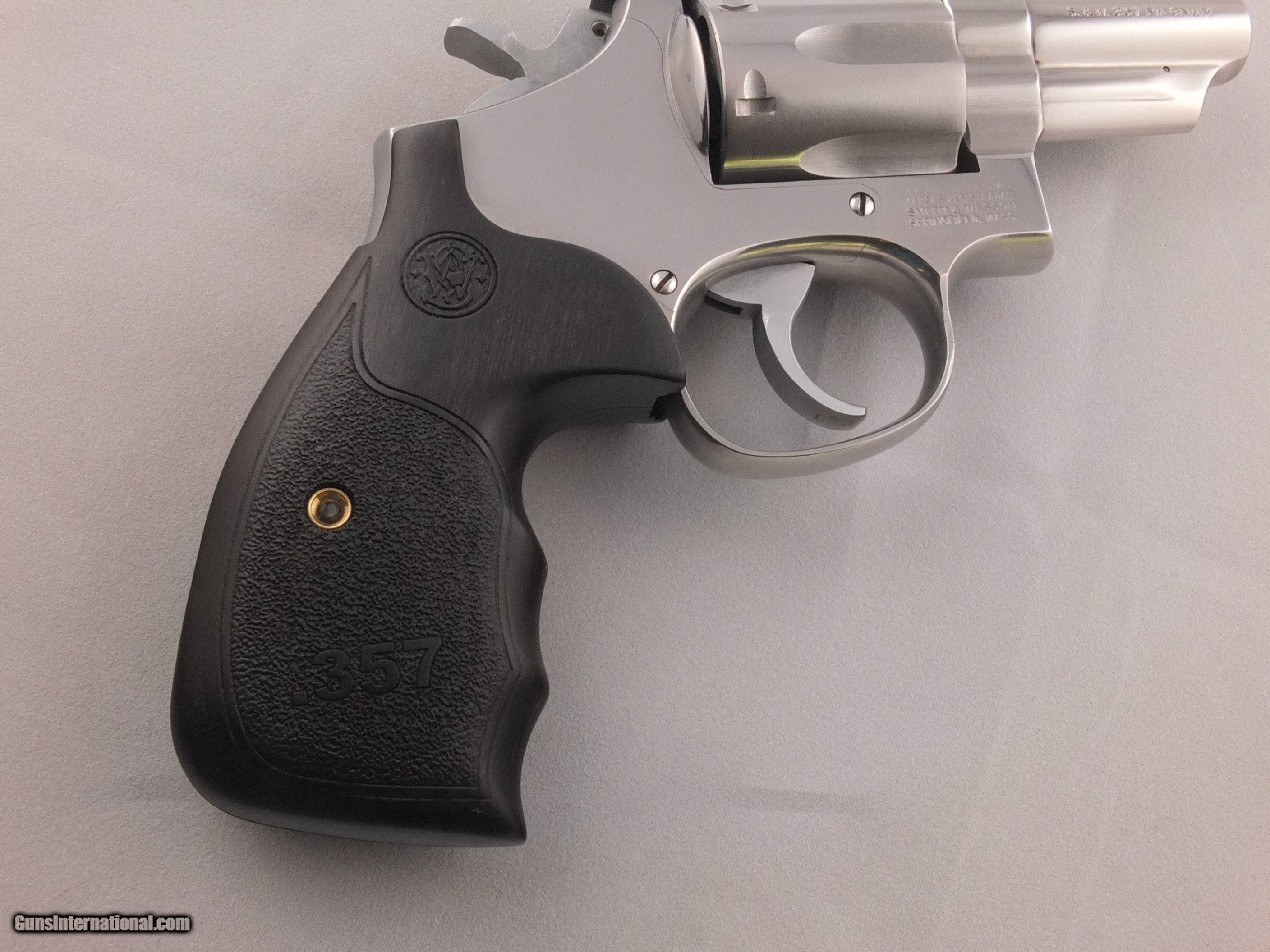 Description: Smith and Wesson Model 66-2 .2 1/2" 357 Magnum Revolver in near mint condition. Features a smooth combat trigger, red ramp front sight, white outline rear adjustable sight, and bright stainless steel finish. Fitted with Smith and Wesson .357 grips in mint condtion. Only the slight indication of consumer use. $1050 plus shipping and handling. SOLD SOLD Handgun Caliber: .357 Magnum Manufacturer: Smith and Wesson Model: Model 66-2 Serial Number: ACC4987 Condition: Near Mint Metal Condition: Near Mint Bore Condition: Mint Bore Action: Double Action Sights: Adjustable Extras: None |