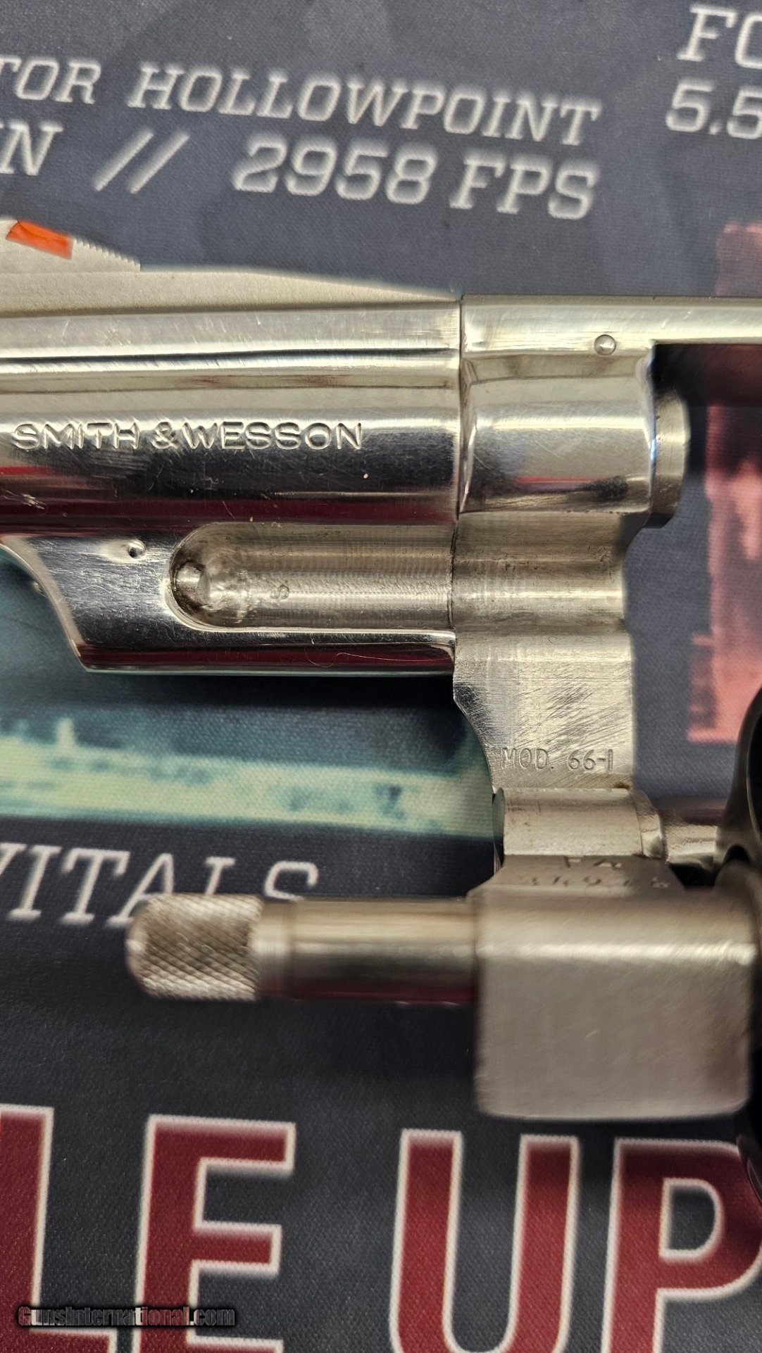 Description: Guns Listing ID: 477868 Smith Wesson 66-1 .357 Mag Stainless 2.5\" *PINNED AND RECESSED MODEL* This beauty is ready for a new home. SOLD Manufacturer: SMITH & WESSON Model: 66-1 Condition: Used - Non-Certified Barrels: 2.5 Gauge Info: .357 MAG Finish: chrome |