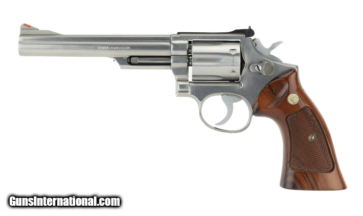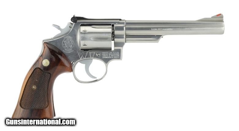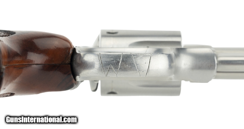 Smith & Wesson 66-1 .357 Magnum caliber revolver. Scarce 6” model with pinned barrel and recessed cylinder. The initials “WV” have been inscribed on the under side of the trigger guard and on the side plate. Probably seemed like a good idea at the time. Bore and action are excellent.