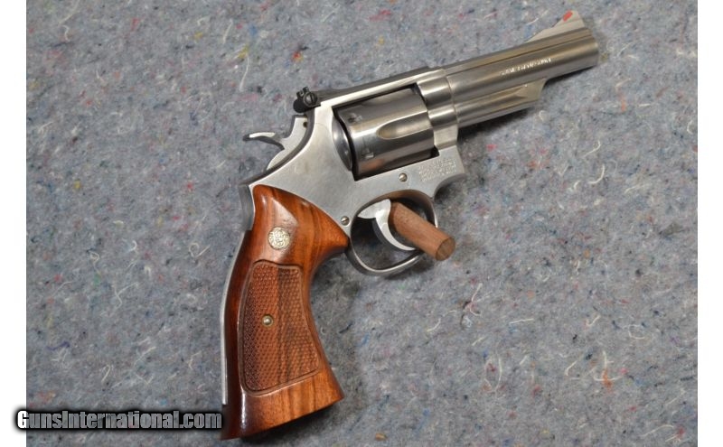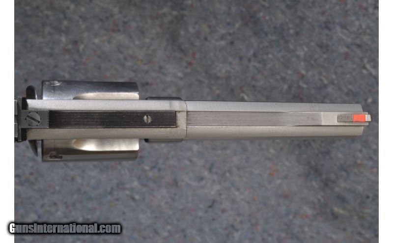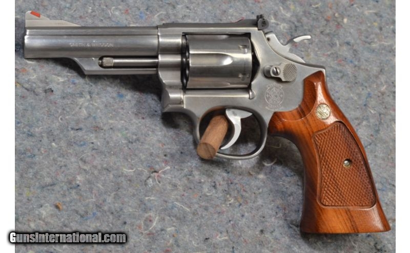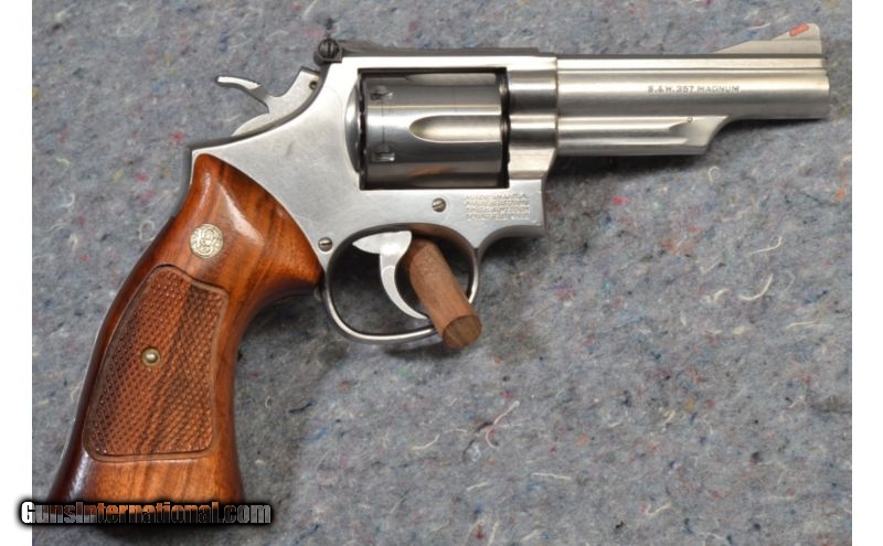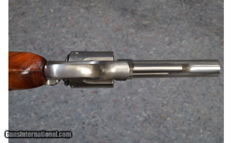 Description: SOLD Caliber Info: .357 Magnum Metal Condition: Very good with some light handling wear/scratches Wood Condition: Excellent, checkered grips have light wear Bore Condition: Excellent, bore is bright and shiny with strong rifling Barrels: 4 1/8 Triggers: Double/Single Action Weight: 2 lbs 7 oz Sights: Adjustable rear sight with ramped front sight Item Location: Wichita, KS |