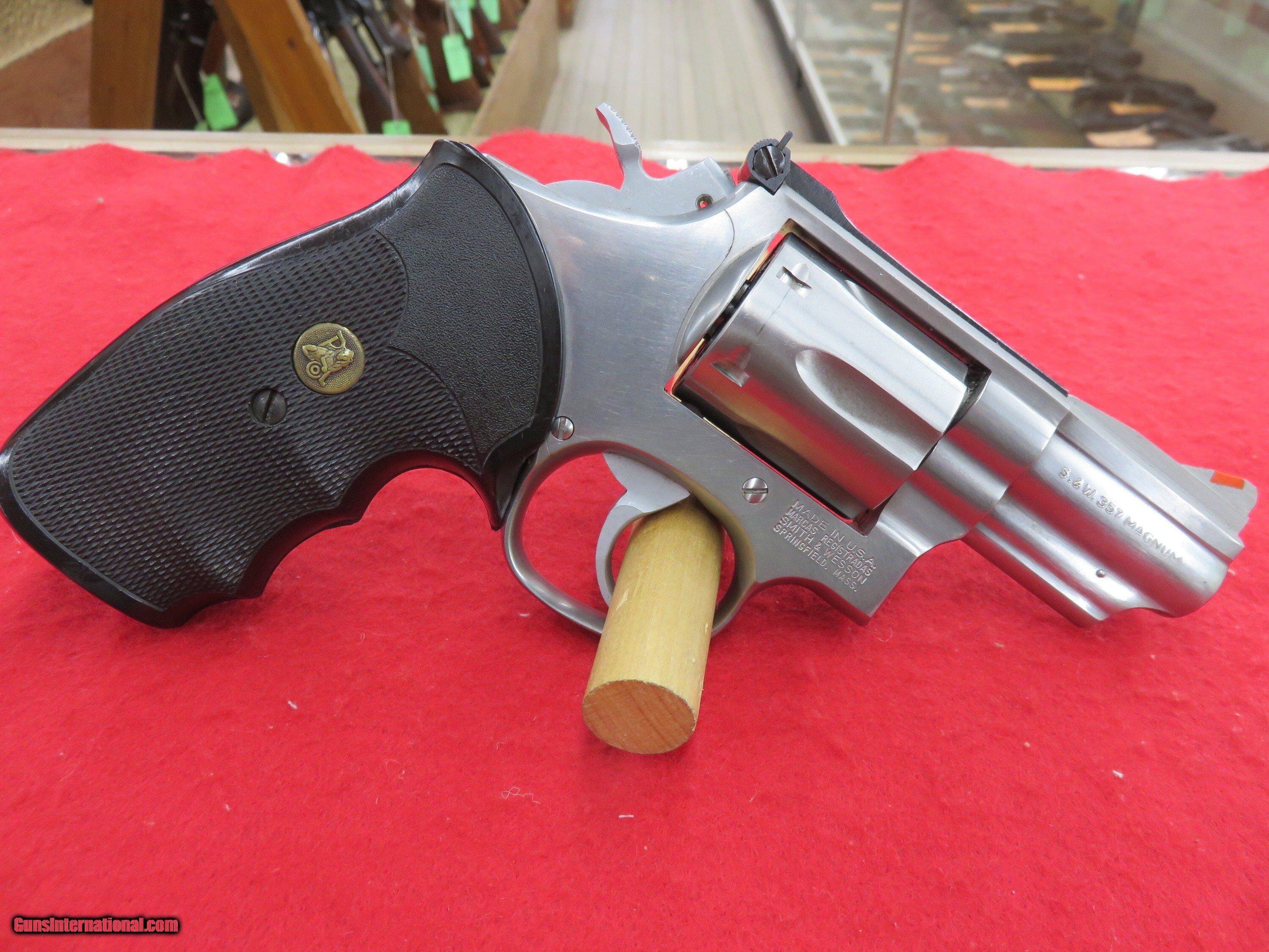 Description: Smith & Wesson, 66-3, 357mag, 2 1/2" barrel, hard rubber pachmyer grips, stainless, adjustable white outlined rear sight, red front ramp, overall condition 97%, $995.00 + $50.00 shipping SOLD |