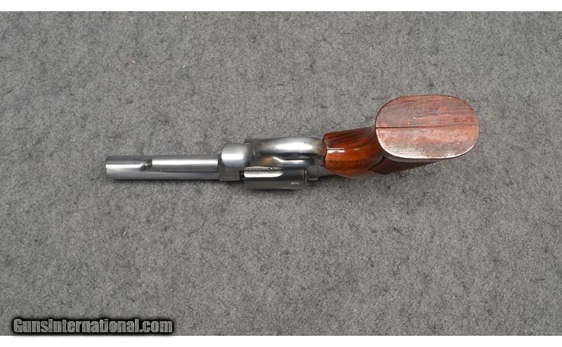 Description: This double action revolver is a Smith & Wesson 66 chambered for .357 Magnum. This revolver features a stainless steel finish, checkered wood grips, and an adjustable rear sight. This revolver is in overall good condition, with a small scuff on the cylinder, and a few small scratches on the right side of the frame. Comes with original cardboard box and paperwork. .357 Magnum SOLD Metal Condition: Overall good condition Wood Condition: Overall good condition Bore Condition: "Bright and shiny, crisp rifling Barrels: 4in Fore End: Checkered walnut grips with S&W medallion Weight: 2 lbs 3 oz Sights: "Adjustable rear sight, ramp front sight Item Location: Wichita, KS |