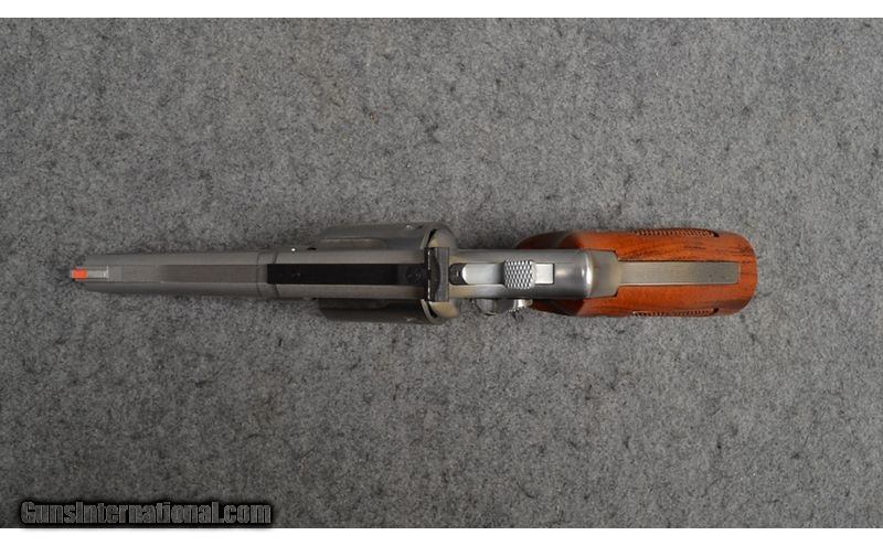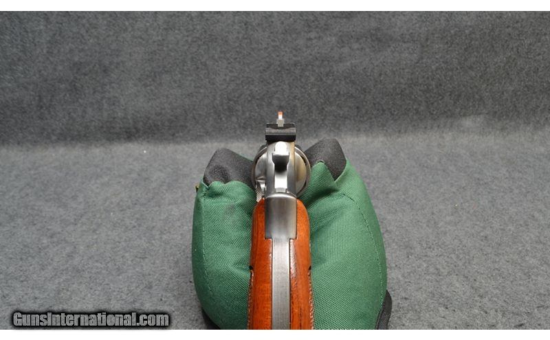 Description: This revolver is a Smith & Wesson Model 66-1 chambered in .357 Magnum. This six round revolver has a painted orange front sight and adjustable rear sight, stainless steel frame, and is a Missouri State Highway Patrol model. The stainless steel frame is in excellent condition. .357 Mag SOLD Chambers: 6 Rounds Metal Condition: Stainless steel excellent condition Wood Condition: Original checkered wood grips Bore Condition: Bright and shiny crisp rifling Barrels: 4 inch barrel Weight: 2 lbs 3 oz Sights: "Painted orange front sight, adjustable rear sight Item Location: Wichita, KS |
