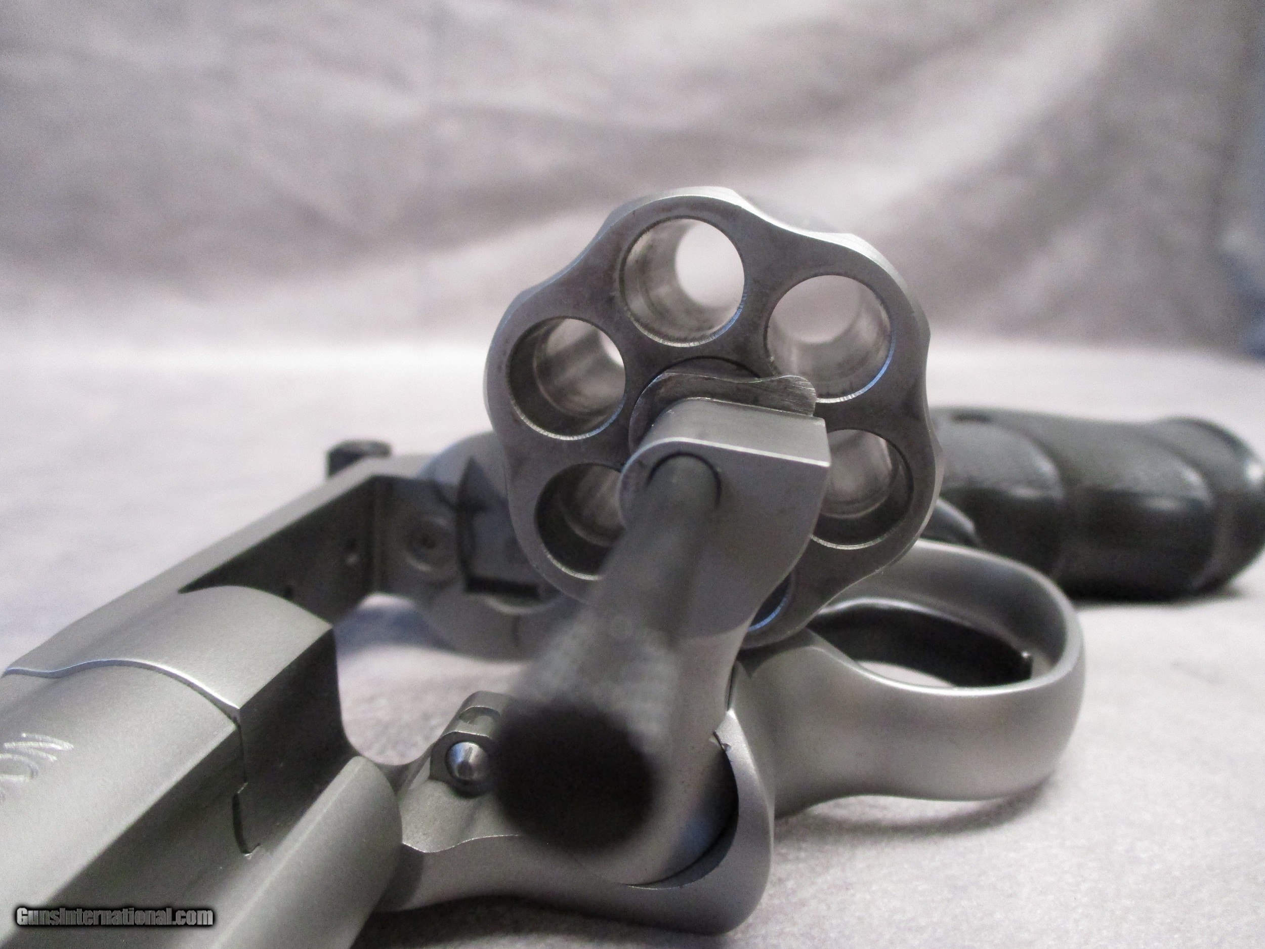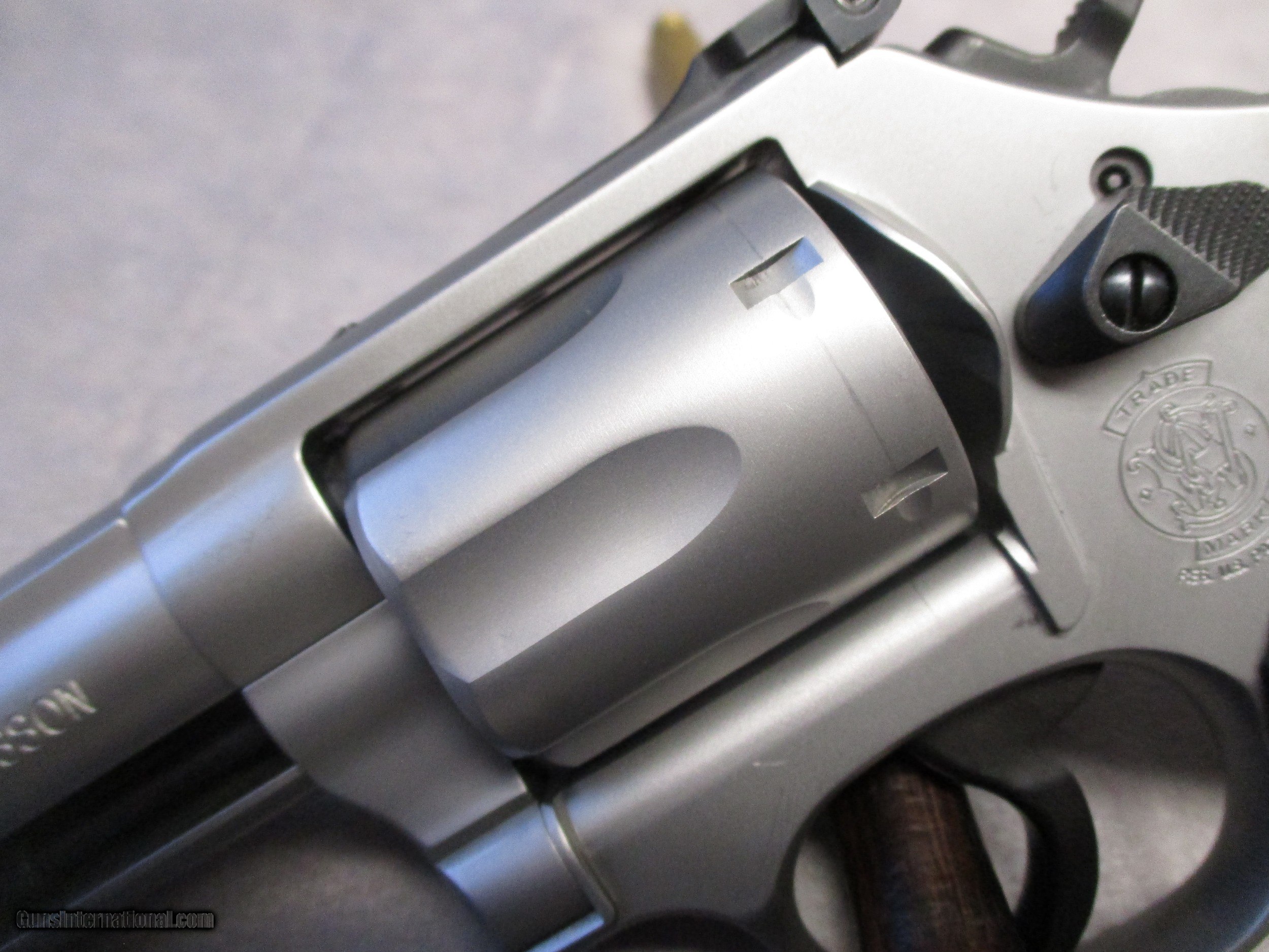 Description: The Model 66 started production in 1970 as a stainless steel version of the Model 19, much like the 627 and 629 are stainless versions of the 27 and 29 respectively. As the Model 19 was sold under the name Combat Magnum for a while, the Model 66 was bestowed with a similar name with Stainless added into the title. The 66 was originally produced in 2.5-inch, 4-inch, and 6-inch variations, with the first having a round butt and the latter two with a square butt. This is a brand-new-in-box example of the latest version of the 66 design, known as the 66-8. It is different from early versions in a few regards. It has a 2-piece, 2.75” long barrel, ball-détente lock-up, pinned front sight, matte black finish on the controls, and internal safety lock. Otherwise, the 66-8 is similar to older models. Other features include a micrometer click rear sight, round butt grips, .312-inch smooth combat trigger, .375” semi-target hammer, and a full top strap and barrel serration. The Model 66 was designed to allow police officers to practice with the handgun using 38 Special, while carrying it with the 357 Magnum. Thusly, they would be equipped with a .357 revolver lighter than the larger N-frame Model 27, and one stronger than the original Model 19. That the 66 fulfilled its intended role well has been recorded in the annals of law enforcement history. It is one of the more fondly remembered revolvers from the 70s and 80s. The 66 has been used by such agencies as the Bureau of Alcohol Firearms and Tobacco (BATF, 4in barrel), several state Highway Patrols, and the Naval Investigative Service (NIS, predecessor to the famous NCIS). This example is used but in excellent shape, and appears to have seen little use. The original grips have been replaced by Pachmayr rubber grips which perform much better at reducing felt recoil. The cylinder exhibits fairly light powder burns and a minor turn ring. The bore remains free of rust or pitting. The original box is not present. SOLD Handgun Caliber: .38 Special, .357 Magnum Manufacturer: Smith & Wesson Model: Model 66-8 Serial Number: DLE6707 Bore: Rifled, 1:10" Twist Chambers: 6 Ejectors: Manual, simultaneous 6-round ejection Condition: Excellent Barrel Type: 2-piece Action: Double/Single Action Triggers: 0.312 inch (7.94 mm) smooth combat trigger Stock: Pachmayr rubber grips Finish: Matte stainless steel Weight: 33.5 oz. Sights: Micrometer-click rear, pinned red ramp front, sight radius 4.75 inches (121 mm) |