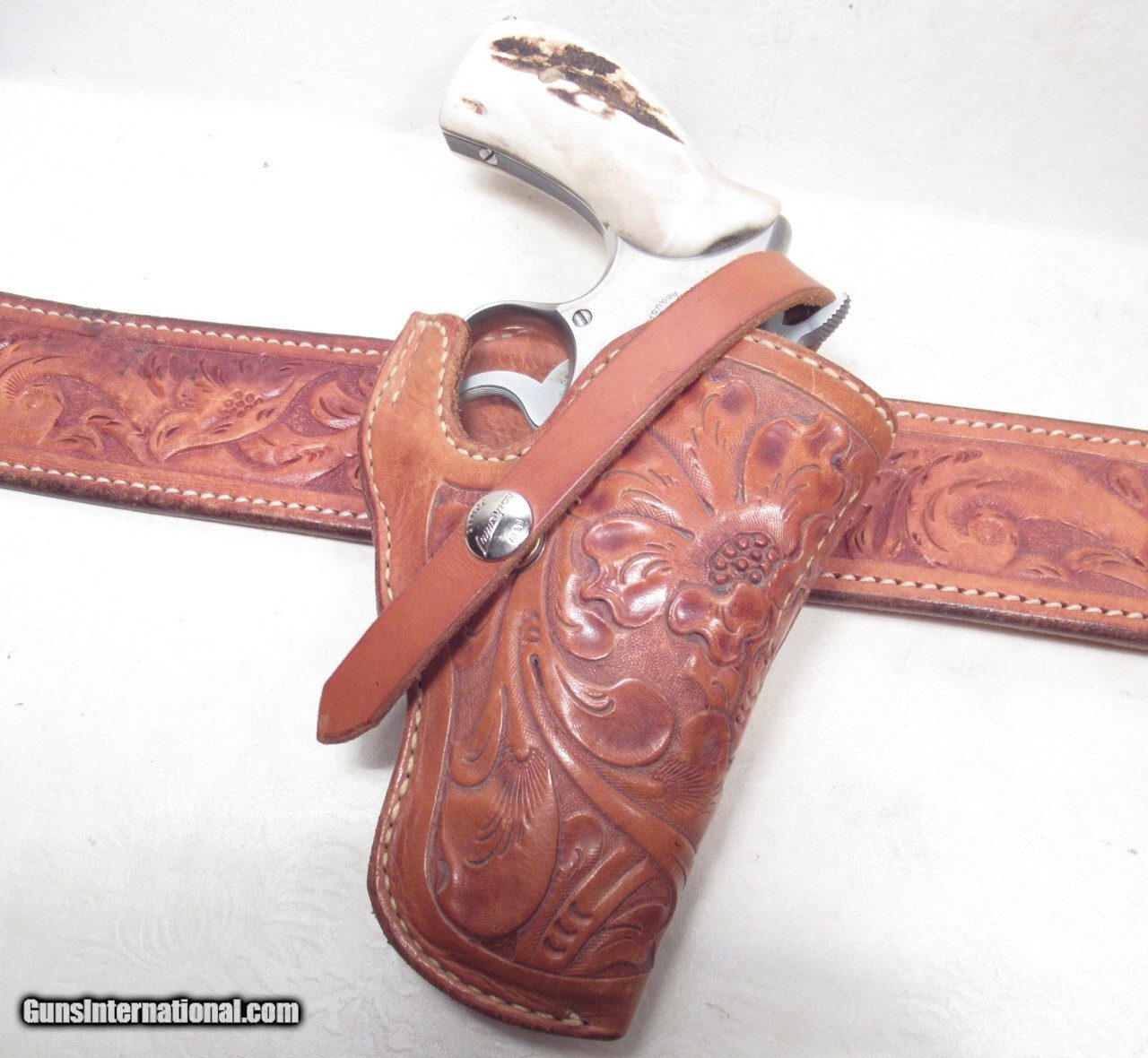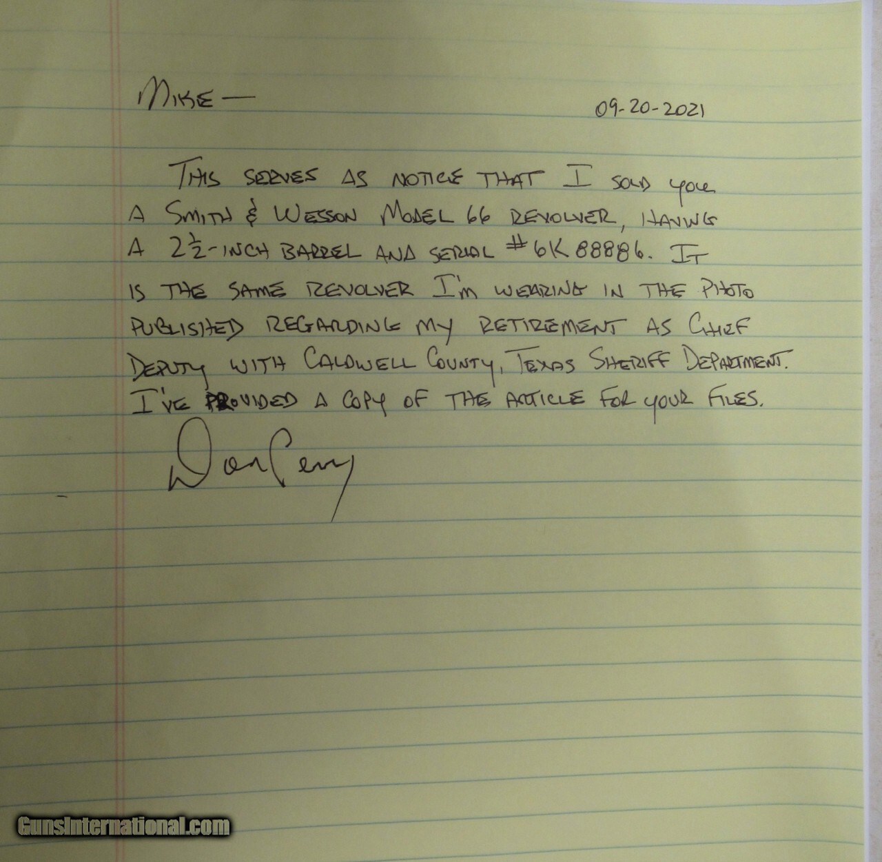 Description: Smith & Wesson Model 66 Revolver; Serial No. 88886; .357 Magnum Caliber; Desirable 2 ½” Barrel; Former Property of Law Enforcement Officer Don Perry (Deceased); Note from Roy Jinks says Revolver Sold to a S&W Distributor in San Antonio, Texas in December 1974; Near Perfect Condition with Very Nice Stage Grips; Included is a Very Nice Tooled Belt and Holster with Fancy Heaver Sterling Buckle; L.O.A. of Belt Approx. 48”; Great Well Documented Texas Law Enforcement Rig and Revolver; See All Photos for Condition; No Texts; Call (254)541-5765 or Email Only; PERSONAL PROPERTY of Harold Wieser; NOTICE: We Do Not Do Any Consignments - All Items Listed are Owned by Us - NO SALES to New Jersey or New York City - Antiques Only to Massachusetts and California; NOTE: All Modern Firearms Must Go to FFL Dealer who will Accept From Individual with Texas Driver License; Price: $2,975 + $100 S&H; Payment Address: Harold Wieser - 1466 U.S. Hwy 77 - Rosebud, TX 76570; SEND PAYMENTS VIA USPS PRIORITY MAIL; BEWARE of SCAMS!!! - DO NOT SEND MONEY or CORRESPONDENTS ELECTRONICALLY UNLESS YOU HAVE SPOKEN to HAROLD WIESER FIRST! (254)541-5765 Manufacturer: Smith & Wesson Model: 66 Serial Number: 88886 Price: $2,975.00 Contact Seller |