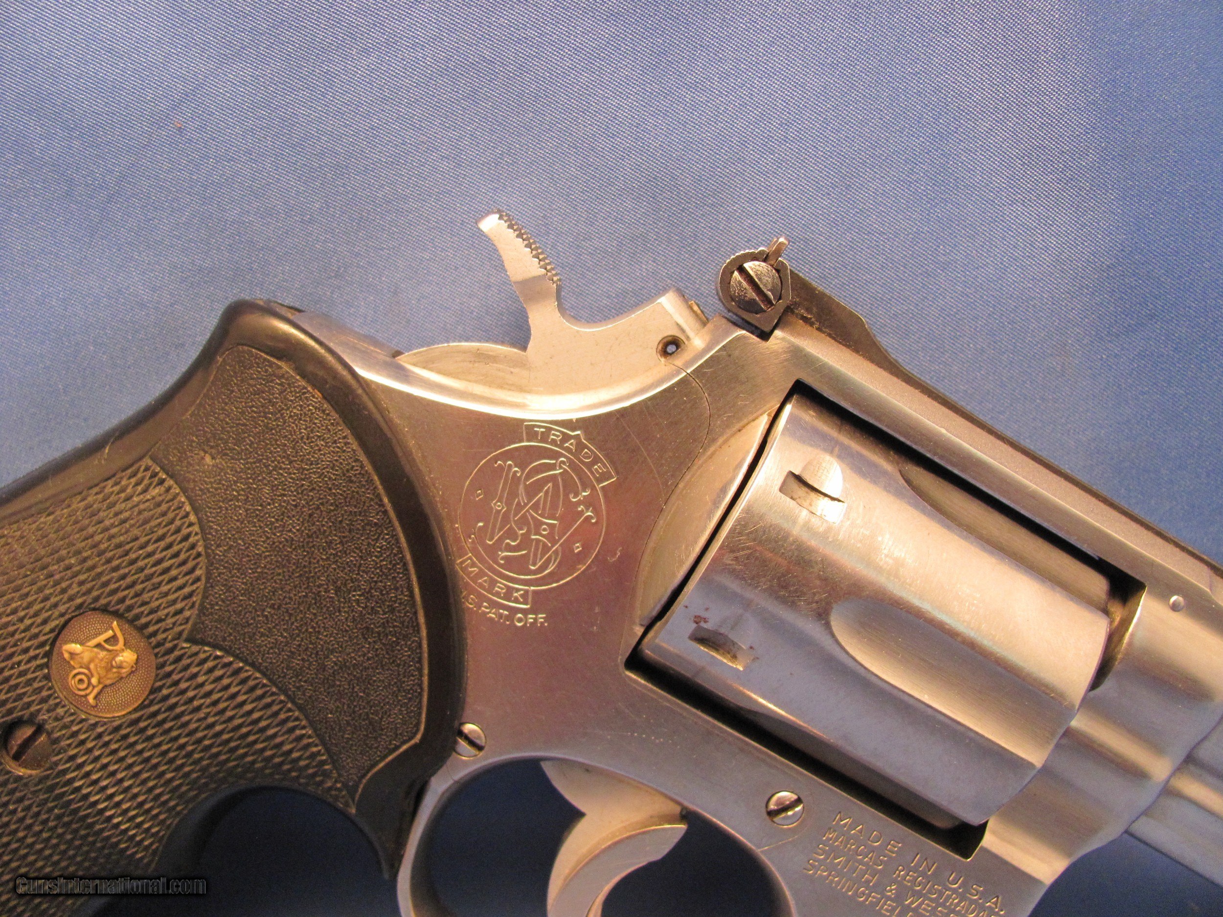 THIS IS A SMITH & WESSON 66-1 STAINLESS 357 MAGNUM DOUBLE ACTION 6-SHOT 4” PIN BARREL REVOLVER