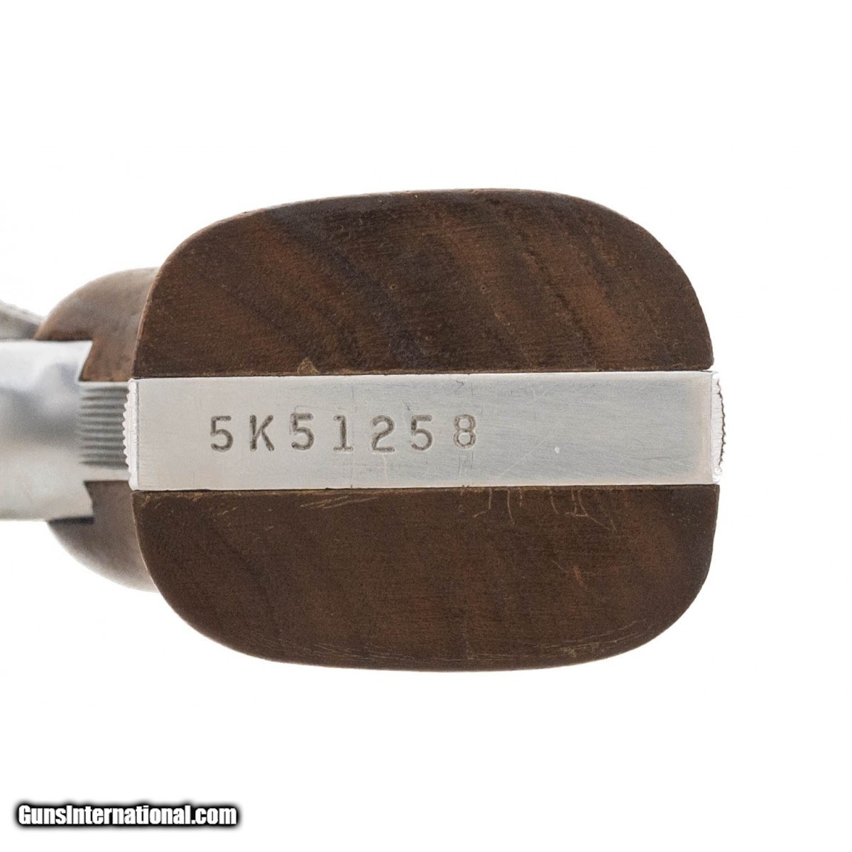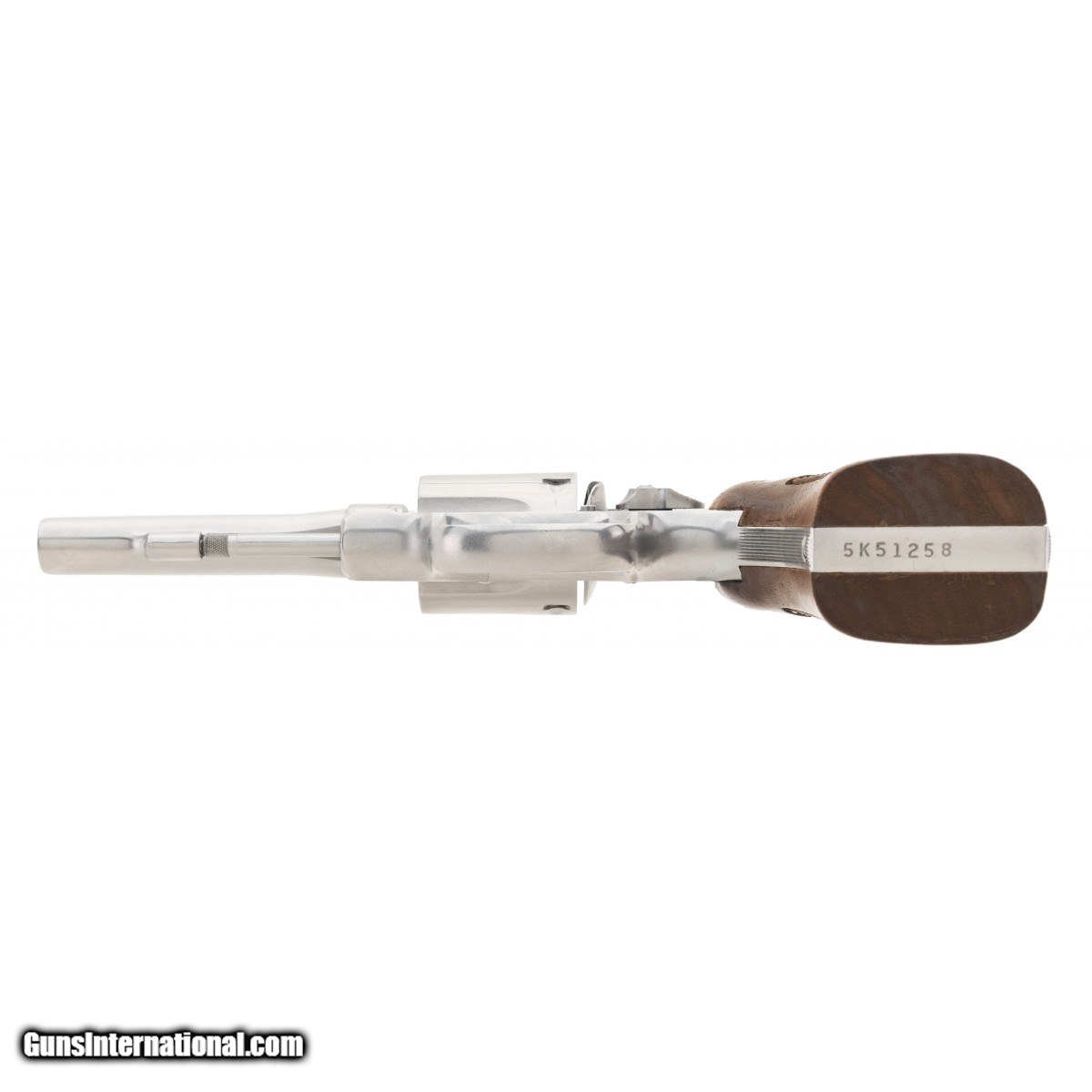 SN: 5K51258. 4" stainless steel service revolver with pinned barrel and chromed hammer and trigger. 1970’s vintage, excellent condition.