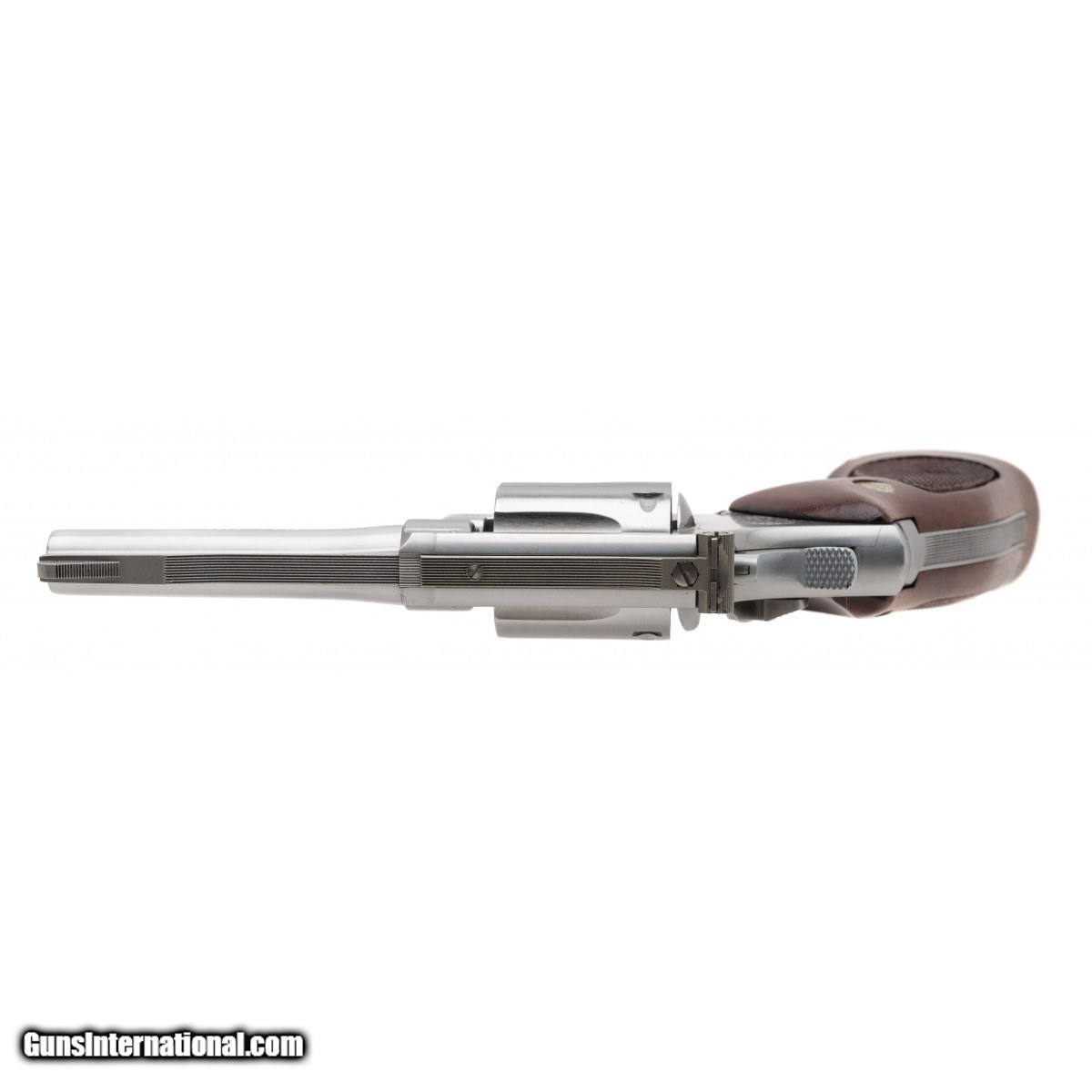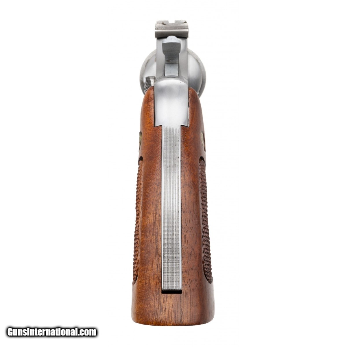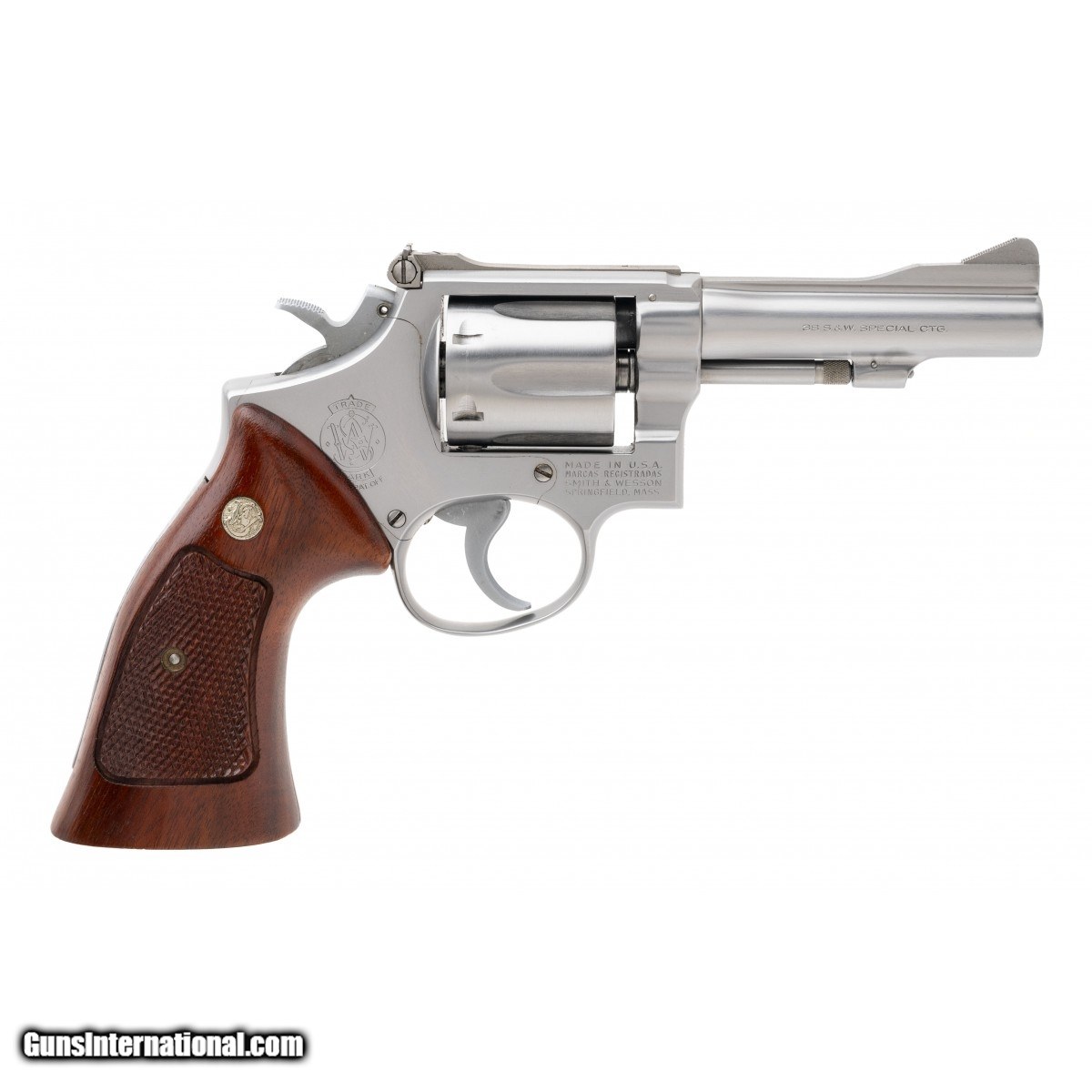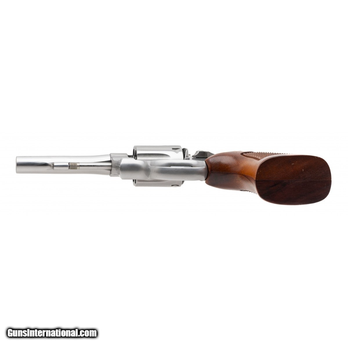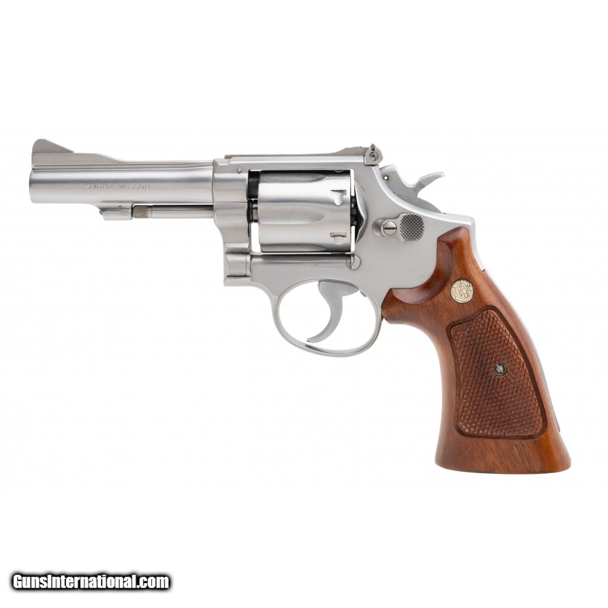 SN: 3K87455. Made in 1972. .38 Special with a 4"" pinned barrel. Bore is in near excellent condition. S&W double action stainless steel revolver. Metal is in excellent condition. Checkered wood grips are in excellent condition with strong wood checkering. Overall condition is excellent. (Consignment)