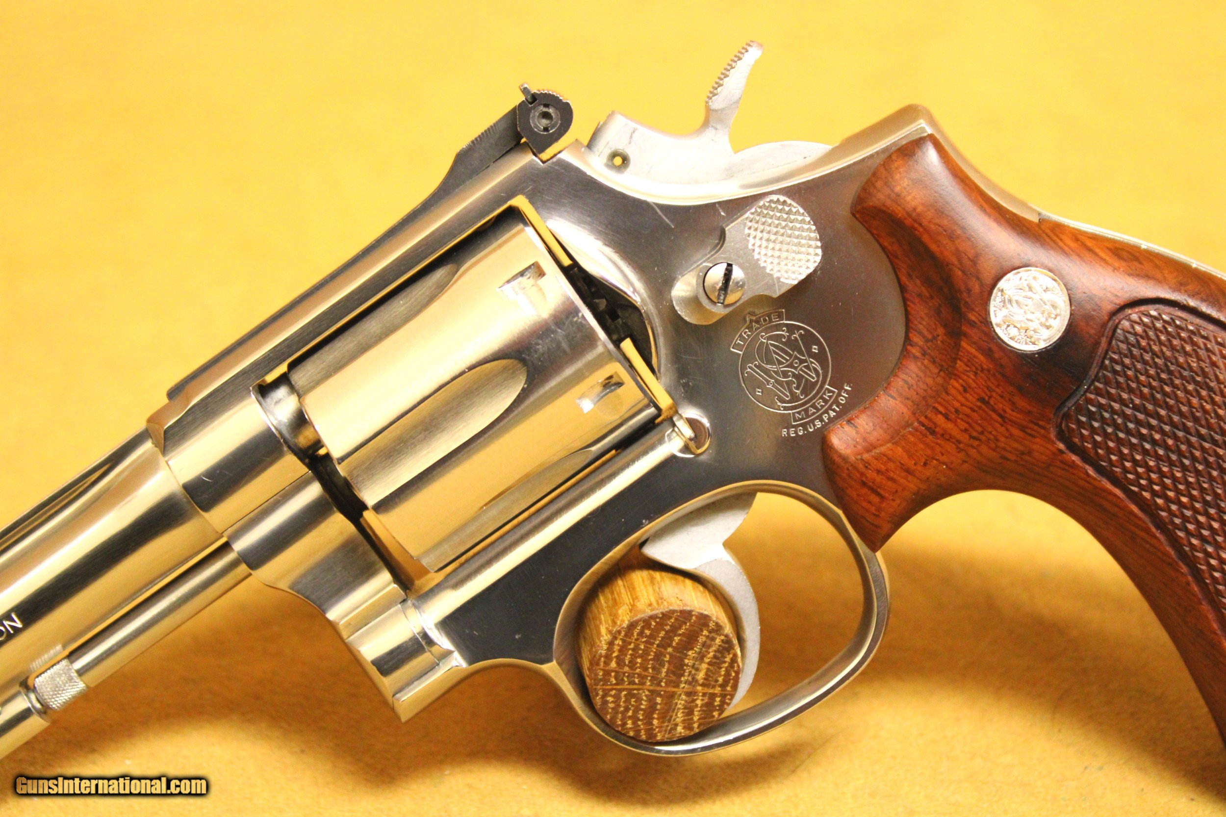 Description: This is a nice stainless steel Smith and Wesson 67-1 in .38 Special with a 4-inch barrel. It has a red ramp front sight and micrometer click-adjustable rear sights. The grips are checkered walnut service-style grips with the S&W monogram. The bore is excellent and the lock-up is tight. All items are also available for sale in our brick & mortar store and are subject to prior sale. Think long, think wrong. Payment On firearms, we typically only accept credit cards or money orders/cashier's checks.