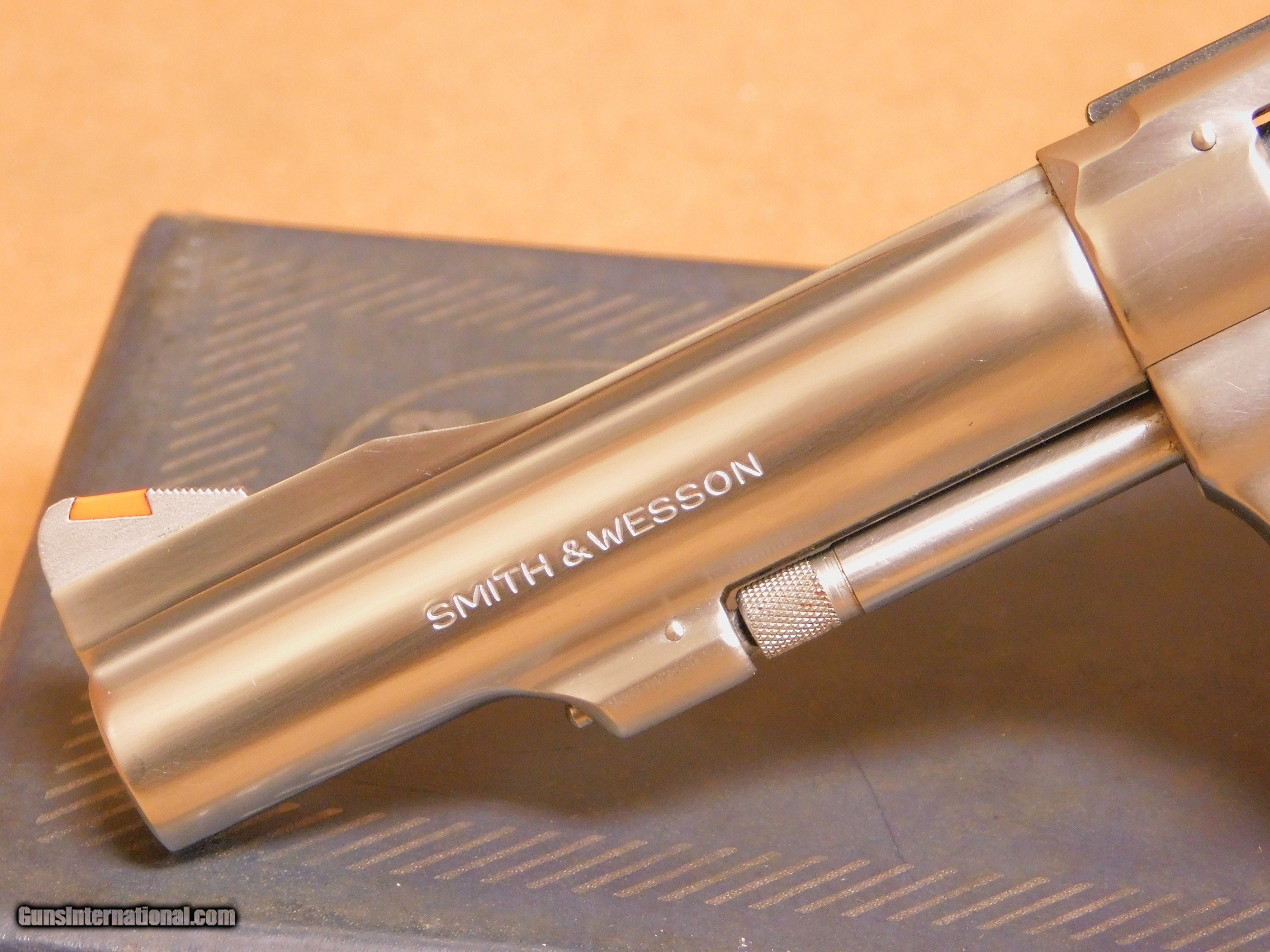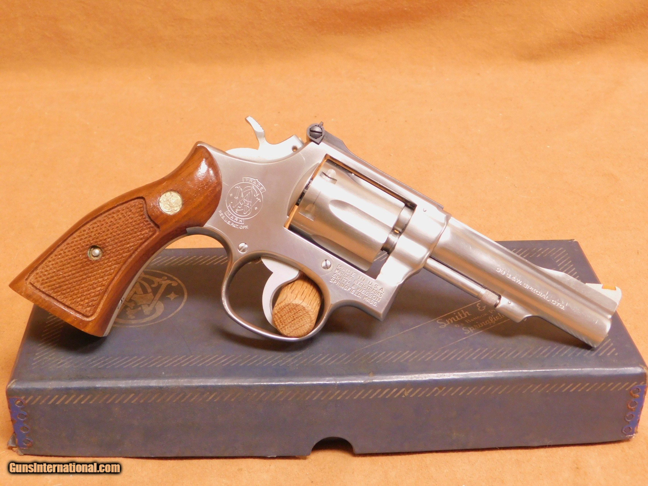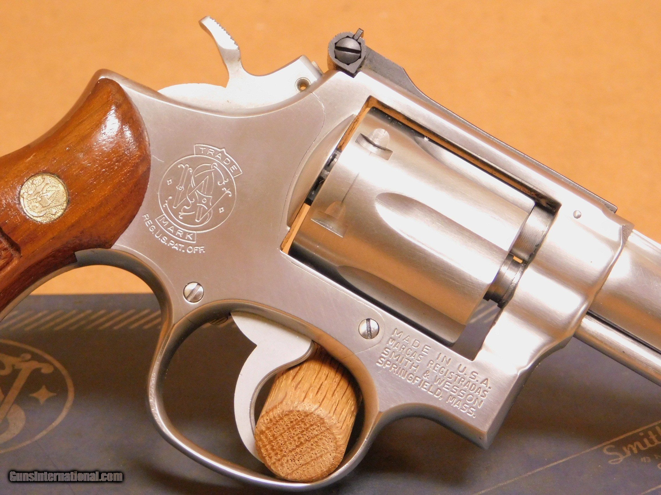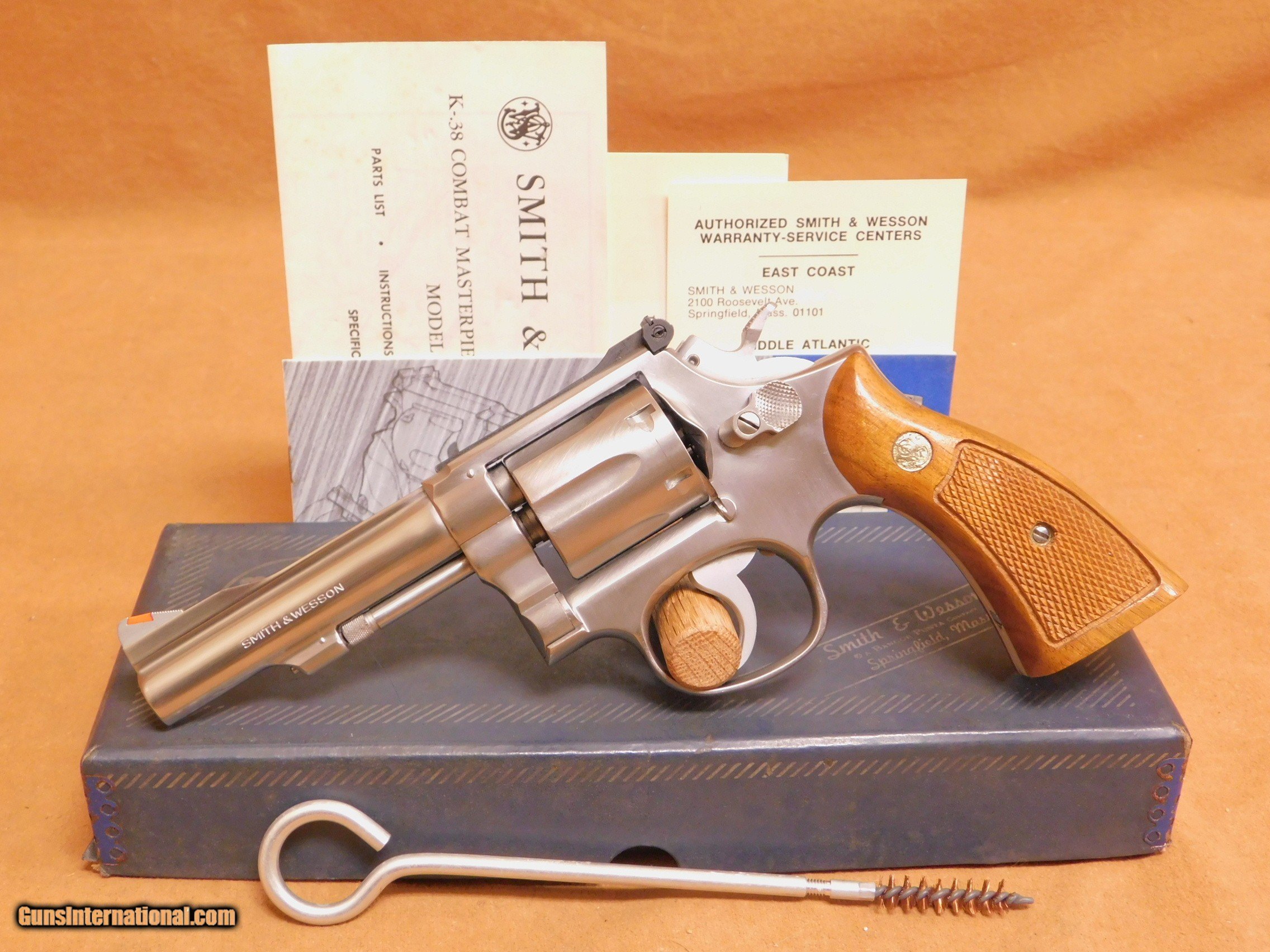 Description: This is a very nice four-inch, stainless Smith & Wesson Combat Masterpiece with its original box and paperwork. It has excellent service grips, a red ramp front sight, a mint bore, and fantastic mechanics. All items are also available for sale in our brick & mortar store and are subject to prior sale. Think long, think wrong. Payment On firearms, we typically only accept credit cards or money orders/cashier's checks.