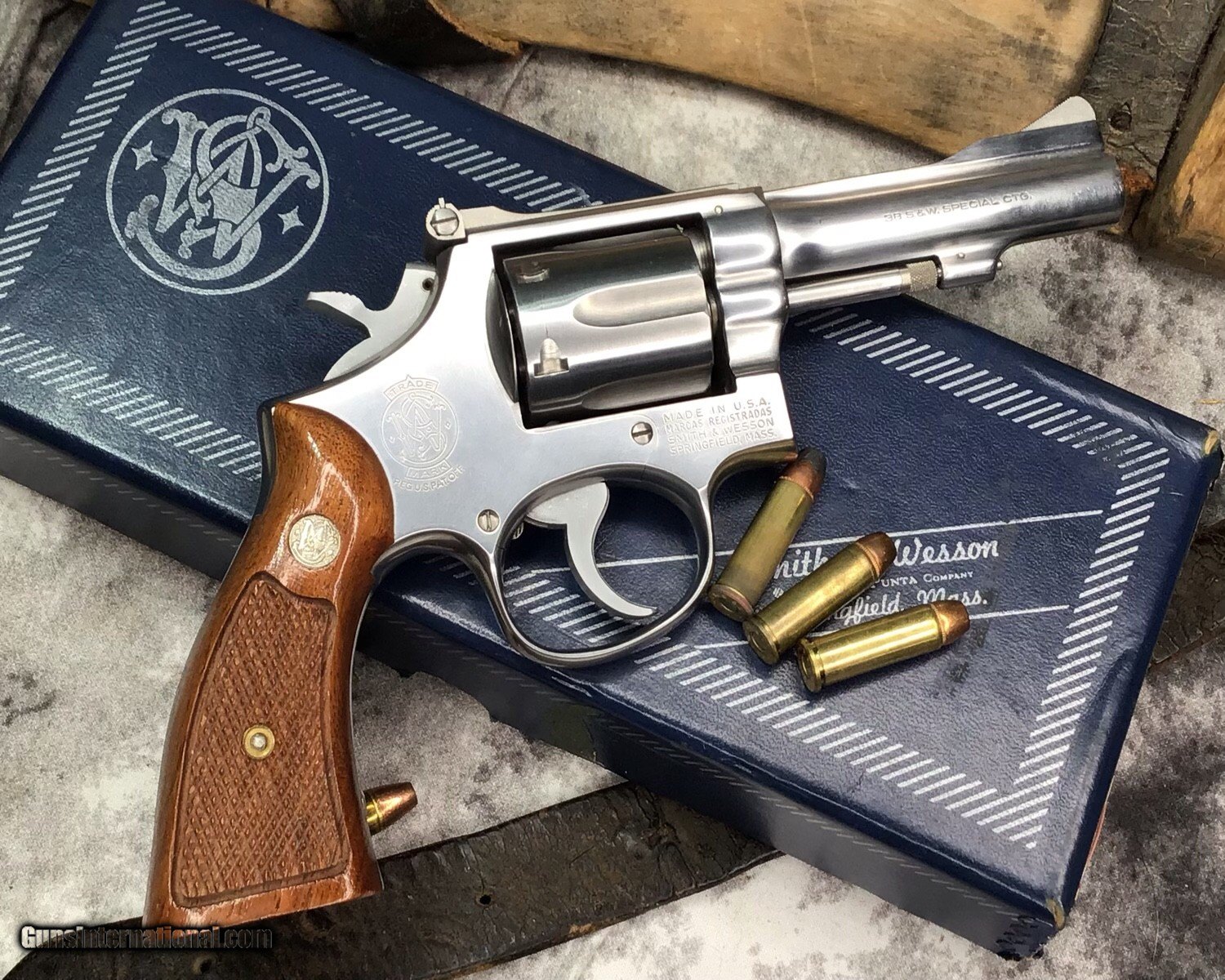 Description: Gorgeous example of a Smith and Wesson K frame model 67. Wearing a four inch pinned barrel, adjustable sights, target grips with silver Smith and Wesson medallions. The model 67 is the stainless steel version of the SW model 15, probably the best .38 special version ever to have left the factory. This is an early gun with stainless steel sights. Made circa 1972. Comes in factory numbered to the gun box with screw driver and cleaning rod, various papers. Excellent condition. Add 3% if paying with credit card. SOLD Curio/Relic: Yes Handgun Caliber: .38 Special Manufacturer: Smith and Wesson Model: 67 no-dash Serial Number: 5K20422 Barrel Length: 4 inch Chambers: 6 Condition: Excellent Metal Condition: Very good Wood Condition: Very good Bore Condition: Very good Action: DA/SA |
