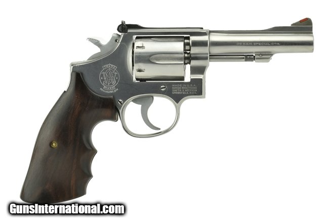 Smith & Wesson 67-1 .38 Special Caliber Revolver. 4” Stainless Service revolver with custom wood grips.