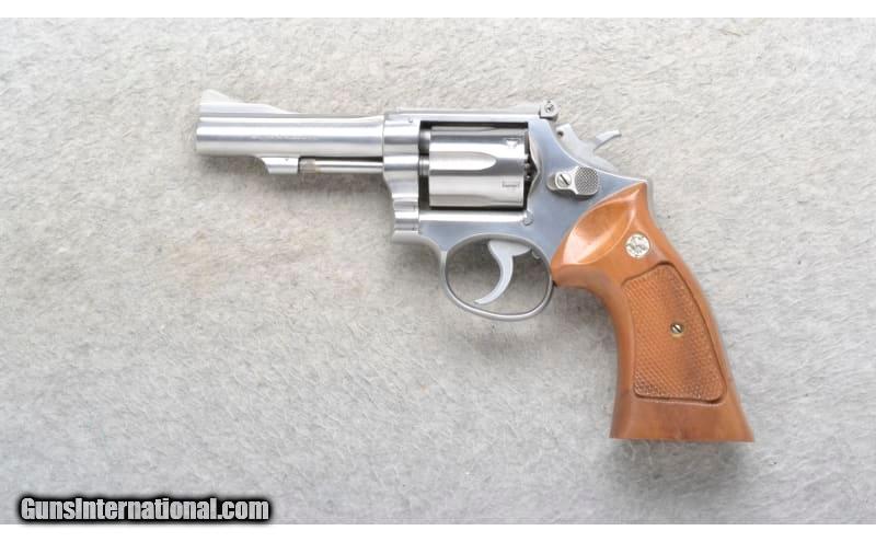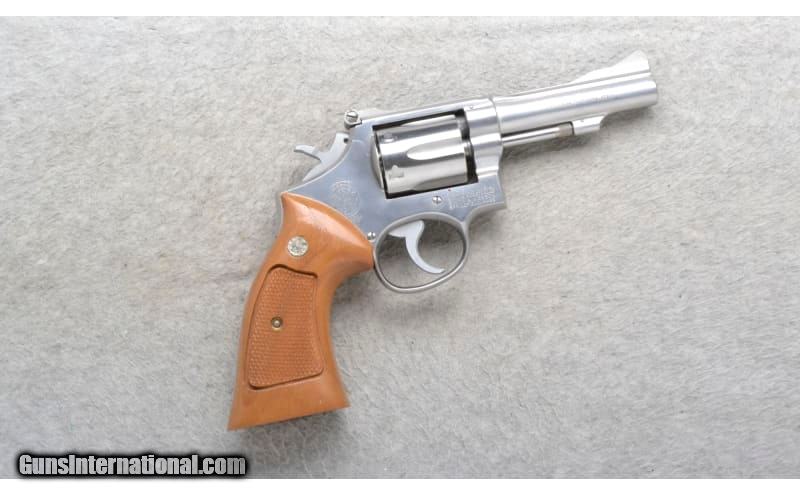 Description: This Smith & Wesson Model 67 is a 6 shot stainless steel K-frame double action revolver in .38 Special Cal. It has a 4 inch barrel. A raised blade front sight and an adjustable notch rear sight. The grip is a checkered hardwood with silver S&W medallions. It has a grooved backstrap. .38 Special SOLD Chambers: 6 shot. Metal Condition: Excellent. Wood Condition: Excellent. Bore Condition: Excellent. Barrels: 4 inch stainless steel barrel. Triggers: SA/DA Weight: 36 oz. Sights: Raised blade front. Adjustable notch rear. Item Location: Richfield, WI |