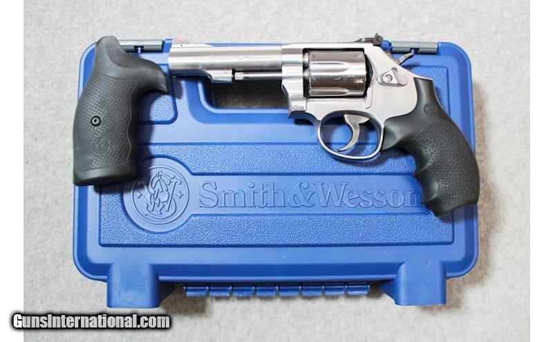 Description: Smith & Wesson 67-5 stainless steel, double action revolver, chambered in .38 Special +P. It has a 4" barrel with 2/3 lug. The hammer and trigger are case-hardened, and the black rubber Hogue grips have finger grooves. The front sight is a black blade with an orange insert, and the rear sight is a black adjustable u-notch. Includes factory hard case, factory black rubber grips with finger grooves and S&W logo, and manual. Free shipping to any Bass Pro Shops or Cabela's store. .38 Special + P SOLD Metal Condition: Very Good with Minor Handling Marks Bore Condition: Bright And Clear Barrels: 4 Inch Triggers: Double Action Weight: 34 oz. Sights: Front: Black Blade with Orange Insert / Rear: Black Adjustable U-Notch Item Location: Allen, TX |