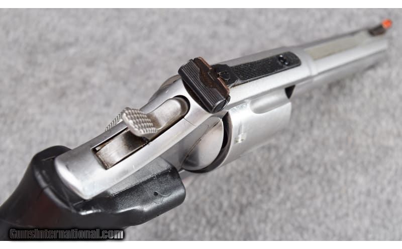 Description: This Smith & Wesson Model 67-6 Combat Masterpiece remains in excellent overall condition showing light use. Stainless steel frame has a few light scuffs from carry with just a faint drag ring on cylinder. Black rubber Crimson Trace grips also show some light scuffs from carry. This is a hand ejector gun. No box. Comes with black nylon holster. Still a very nice gun! .38 S&W Special SOLD Metal Condition: Excellent Bore Condition: Excellent Barrels: 4 Triggers: Factory - DA Butt Pad: Textured Black Rubber Grips with Crimson Trace Logo Weight: 36 oz. Sights: Serrated Ramp Front with Red Insert - Adjustable Square Notch Rear - Crimson Trace Laser Grips Item Location: Wheeling |