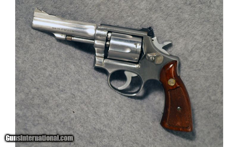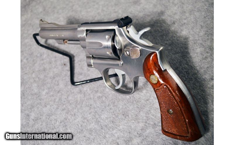 Description: A Smith& Wesson model 67 stainless steel revolver in .38 S&W Special caliber. Has rear adjustable sight and front ramp (missing insert). Overall in good condition with some wear and dentswith thegrips and numerous scratches on the metal along with two dents. .38 Special SOLD Chambers: Revolver Metal Condition: Good with some small scratches and a couple of small dents. Wood Condition: "Good, checkering sharp, some dents and one small crack. Varnish worn in a couple of spots. Barrels: 4" Stainless. Triggers: Single for double or single action. Sights: "Rear adjustable, front ramp, missing insert. Item Location: Lexington, KY |