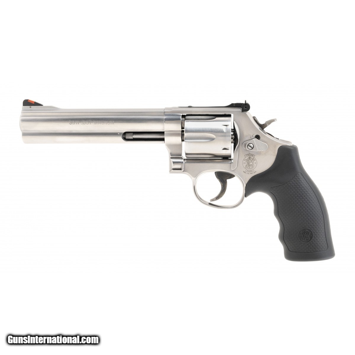 L-frame revolver in a 6"" barrel, stainless steel frame, and adjustable rear sight with rubber grips. NEW. UPC: 022188642247