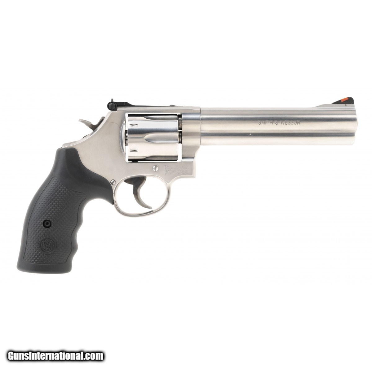 L-frame revolver in a 6"" barrel, stainless steel frame, and adjustable rear sight with rubber grips. NEW. UPC: 022188642247