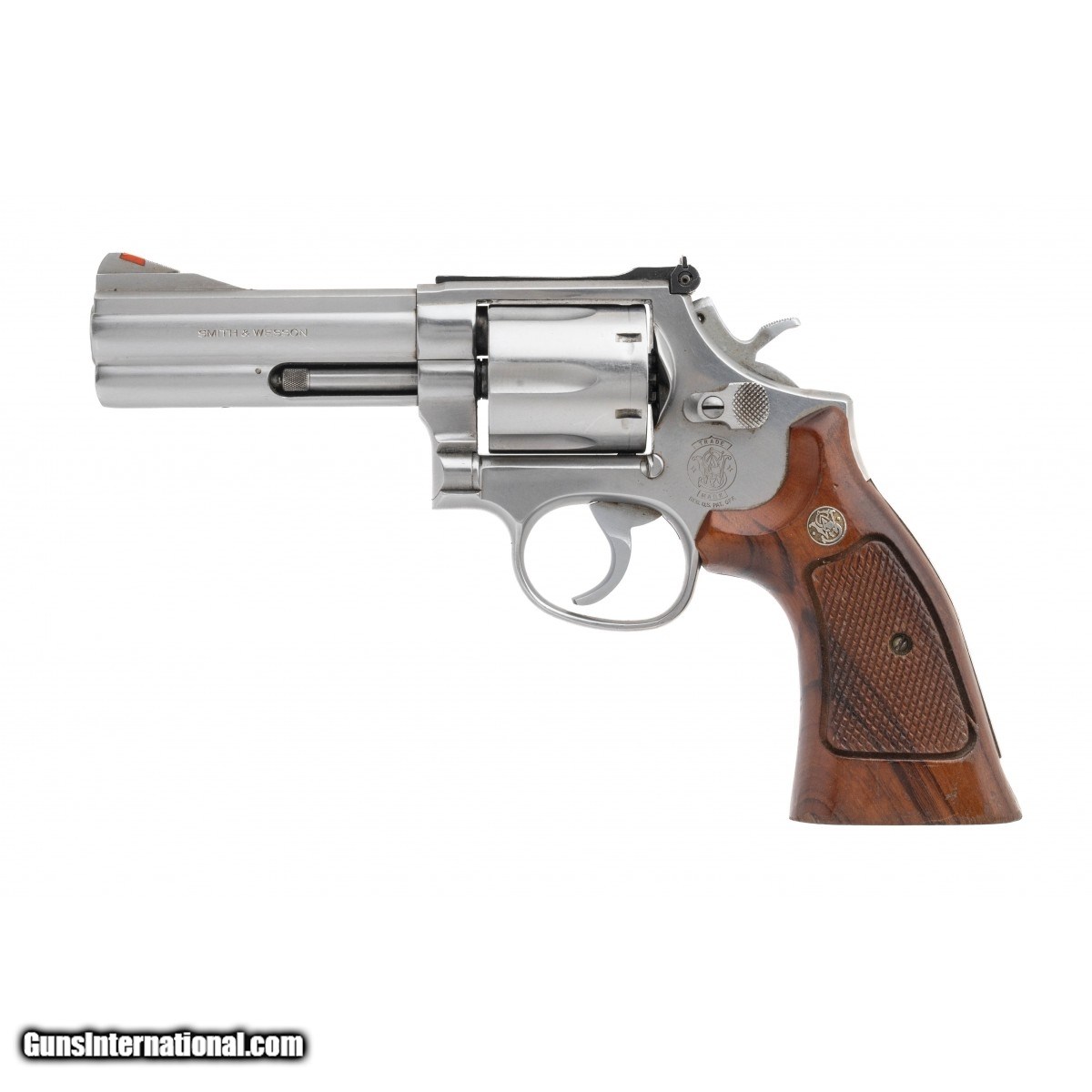 Description: " SN: AJE9759. Circa 1980s. .357 Magnum with a 4"" barrel, bore is excellent. Stainless steel double action revolver with adjustable rear sight and wood grips. Overall very good plus condition. SOLD |