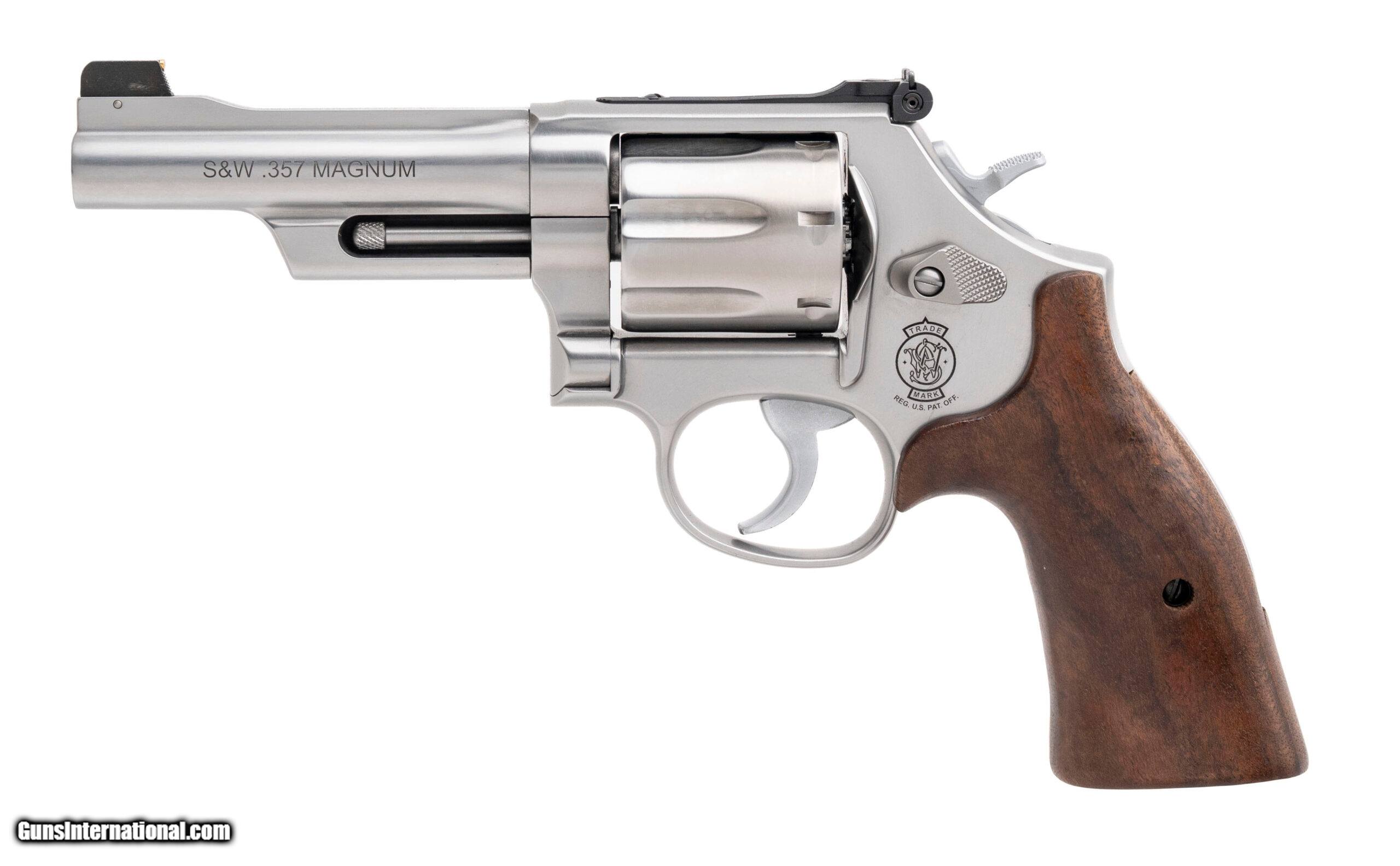 Description: "Distributor Exclusive Double Action L-Frame Revolver with a 4"" Barrel. 7rd Cylinder, Gold Bead Front Sight & Adjustable Rear Sight, No Internal Lock, Brushed Stainless Steel Frame, and TGW Bear Hug Walnut Grips. NEW. UPC: 022188900743 (STOCK PHOTO) SOLD |