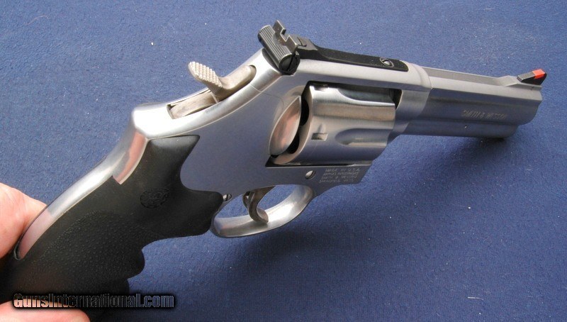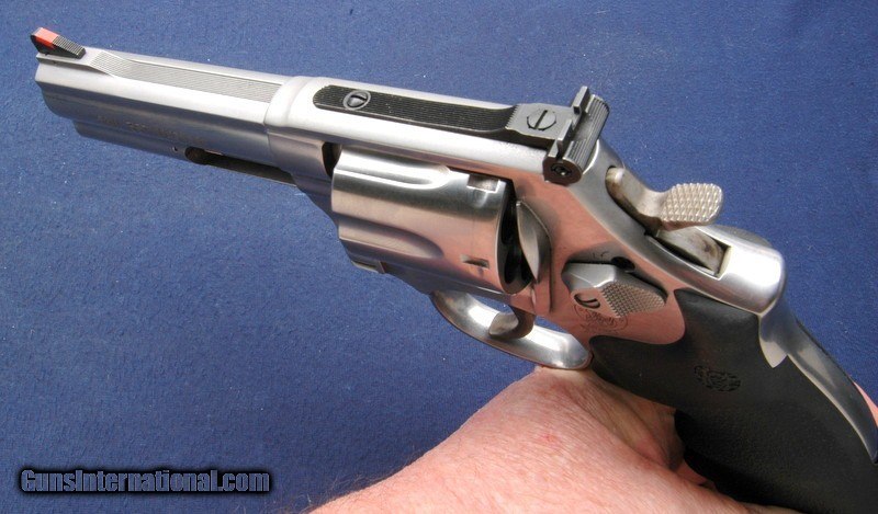 Description: Very nice S&W, the full length underlug makes it muzzle heavy and nicely balanced to reduce muzzle flip. Mint bore and cylinder. RR and WO adjustable sights. Fitted with Hogue hard rubber grips. Comes in the factory hard case with all inserts and extras. $45 shipping to the lower 48, 3% surcharge for using a CC. If you pay with a personal check, you can expect us to hold the item for up to 10 days to ensure that the check clears. SOLD Handgun Caliber: .357 Magnum |