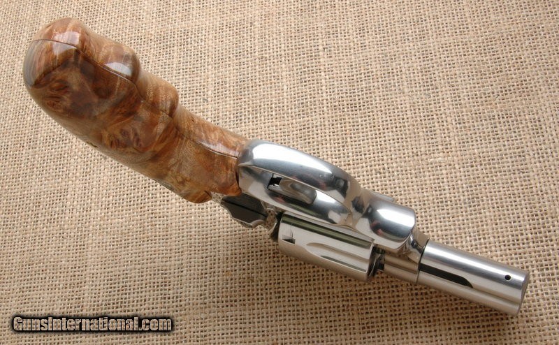 Description: Beautiful gun, seven shooter, clean as a whistle inside and out. Could be taken as new. RR and WO sights. Beautiful set of burl Culina grips. Culina calls the wood- natural gray stabilized Maple Burl. They are beautifully made and fitted, as you can see in the pics. Priced to sell, this is a great deal and a nice package.. This revolver comes in the original factory hard case with all inserts, safety lock and the original grips. $50 shipping to the lower 48, 3% surcharge for using a CC. If you choose to pay with a personal check, we will hold the item for up to 10 days to make sure that it clears. Please expedite such pymts as we will hold an item on your word for 5 days. SOLD Handgun Caliber: .357 Magnum |