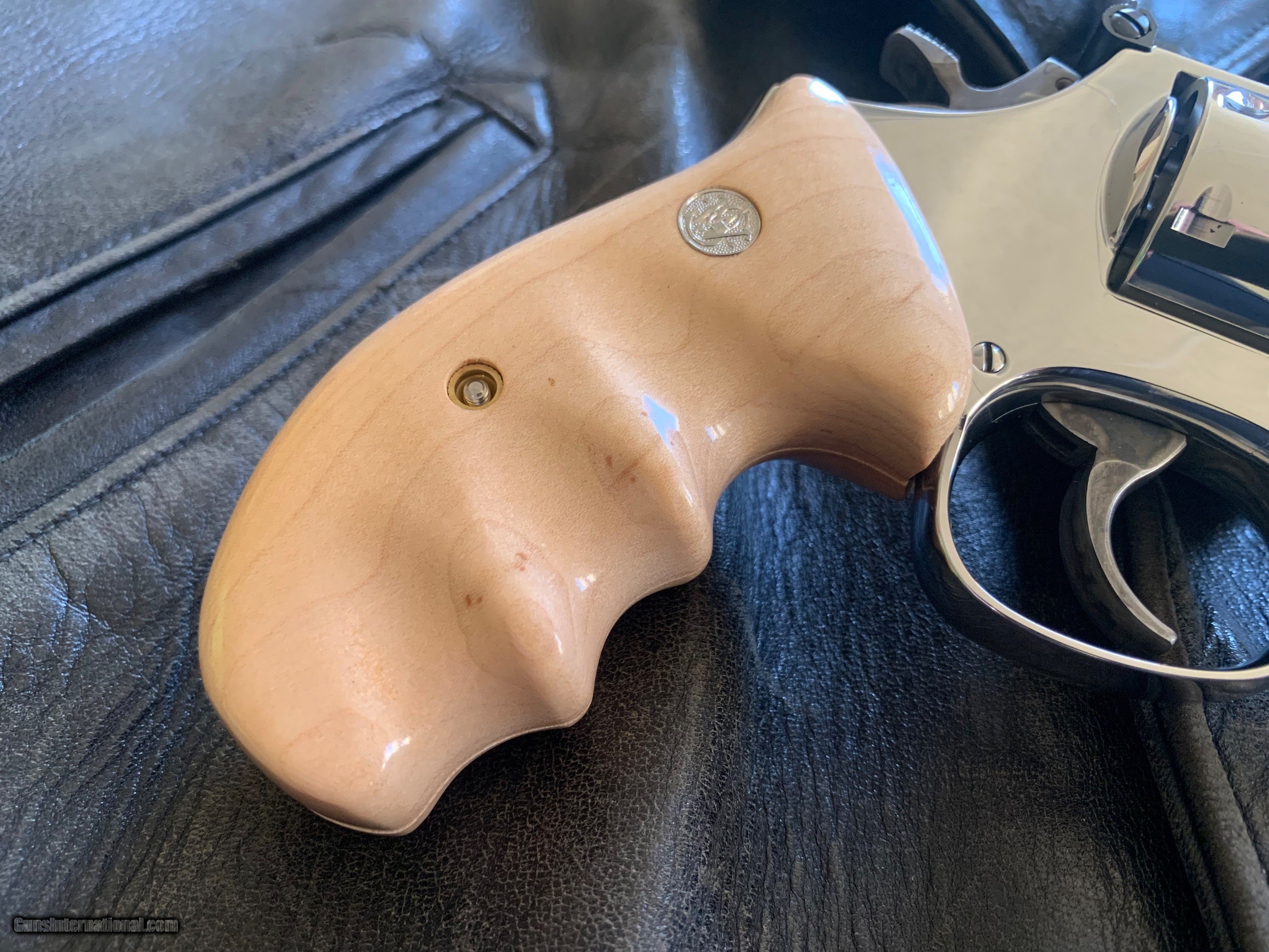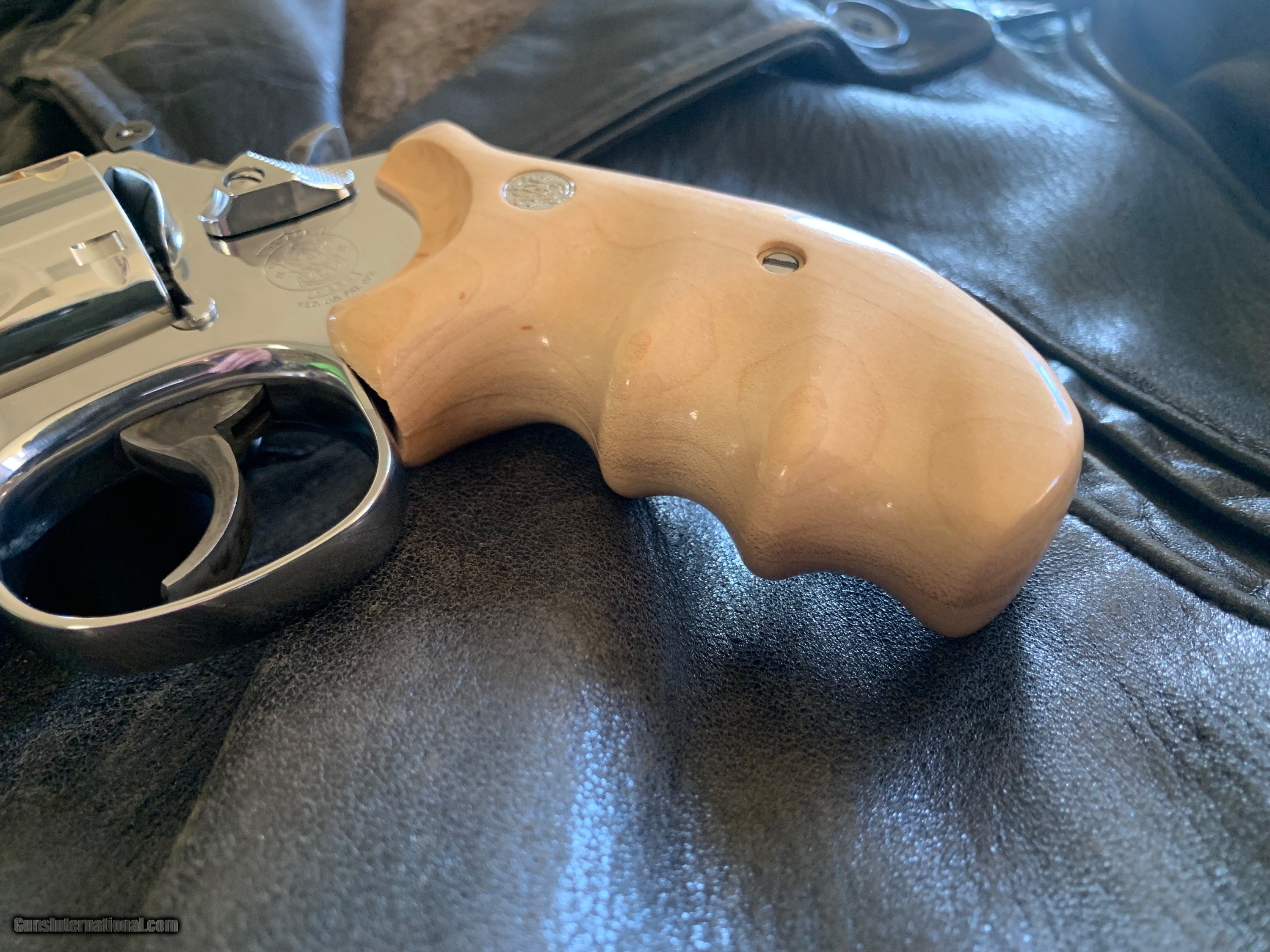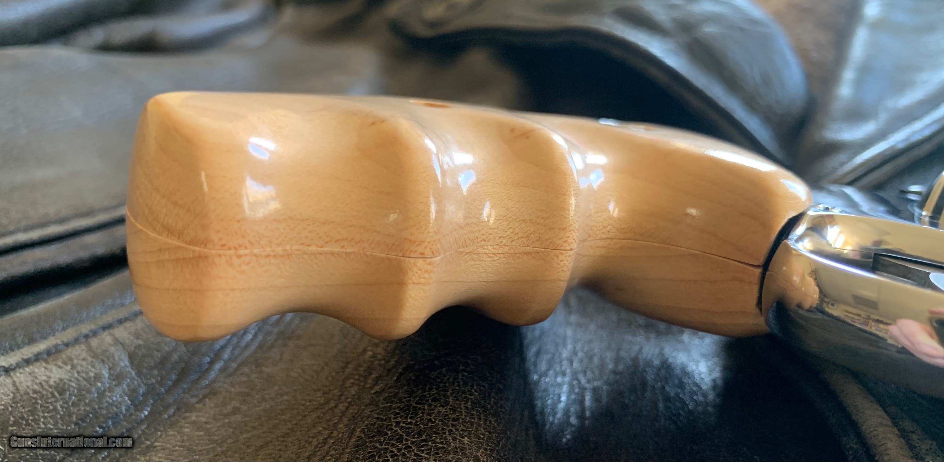 Description: Up for sale is a beautiful Pre Lock Smith and Wesson 686-4 7 shot 357 magnum revolver with a 6” barrel. It has been bright polished at the S&W Performance Center. The grips are a VERY nice set of book matched “Butcher Block” Maple, Lew Horton style combat grips with S&W medallions. This 686-4 has the desirable threaded sight mount, hammer mounted firing pin, forged trigger and hammer. All that combined with the rarity of it being a 7 shot makes it a great addition to any collection! When it comes to the S&W 686, the -4 revision is arguably the best and most desirable one you can buy to date. The 686-4 is the last revision of S&W 686’s that had all the desirable upgrades before the cost saving and safety features of the 686-5 and forward. It does NOT have the MIM hammer and trigger or internal safety that is found on the 686-5 & -6’s. The revolver is in beautiful condition, which can be seen in the many pictures. It will ship in a new Plano hard case. Shipping is $40 to the lower 48 states. I can accept certified check or personal check. If paying by personal check I will hold the revolver until payment clears. $1650 o.b.o plus $40 shipping SOLD Handgun Caliber: .357 Magnum Manufacturer: Smith and Wesson Model: 686 Barrel Length: 6 Condition: Excellent Metal Condition: Excellent Wood Condition: Excellent |