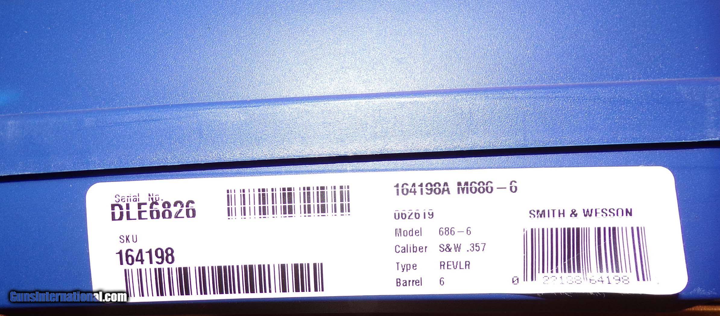 Description: S&W 686-6 IN .357 MAGNUM CAL., WITH 6" BARREL. COLOR STAINLESS STEEL. CONDITION NEW IN BOX. SERIAL NUMBER DLE6826. S&W MODEL 686-6 IN .357 MAGNUM CALIBER, COMES WITH PAPERS AND FACTORY HARD CASE, NEW IN BOX OVERALL CONDITION, D1857 SOLD |