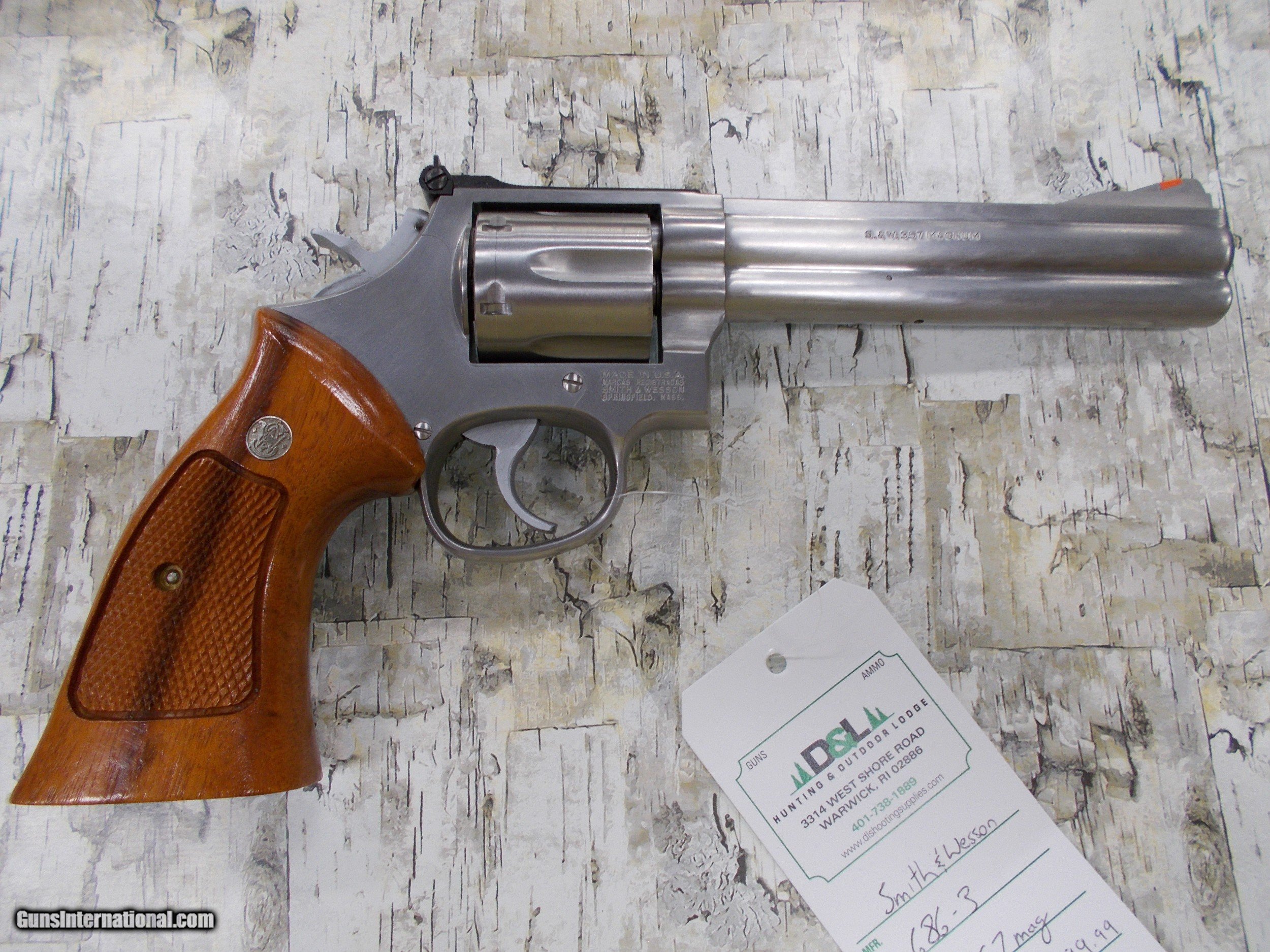 Description: HAVE A S&W MODEL 686-3 STAINLESS 357 MAG 6" BBL GUN LOOKS AS NEW IN ORIG BOX MINT BORE ORIG WOOD GRIPS CALL TO ORDER AT 401 738 1889 SOLD |