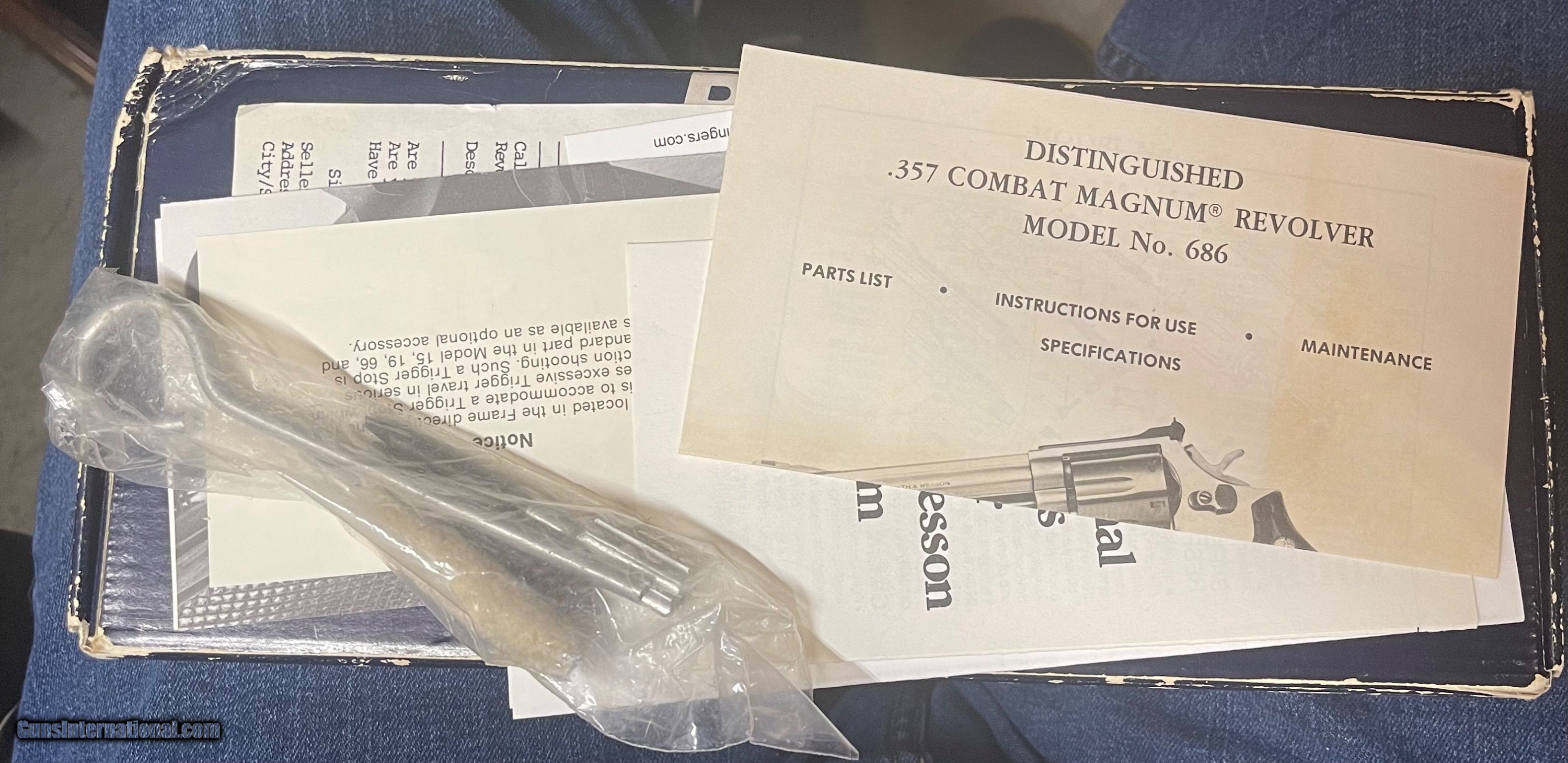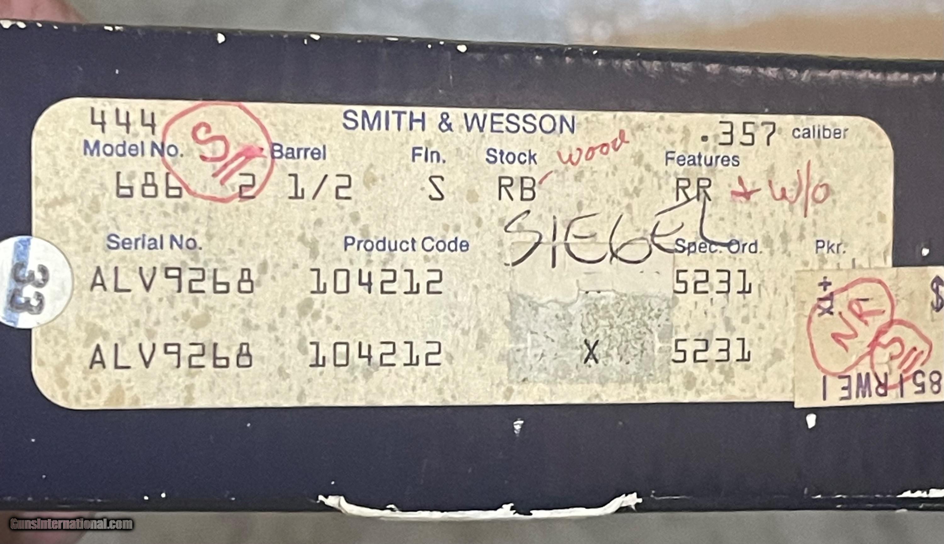 Description: Man, what a nice no dash 686. The gun features a 2 1/2 inch full lug barrel, stainless finish, target sights, and beautiful combat grips. Comes with original numbered box, tools, and paper. A beautiful piece! Please email with questions. Shipping and insurance included. SOLD Manufacturer: Smith and Wesson Model: 686 Barrel Length: 2 1/2 inch Condition: LNIB Metal Condition: Excellent Wood Condition: Excellent Bore Condition: Excellent Action: Da, sa Finish: Stainless Sights: Target Case: Yes Item Location: 37075 |