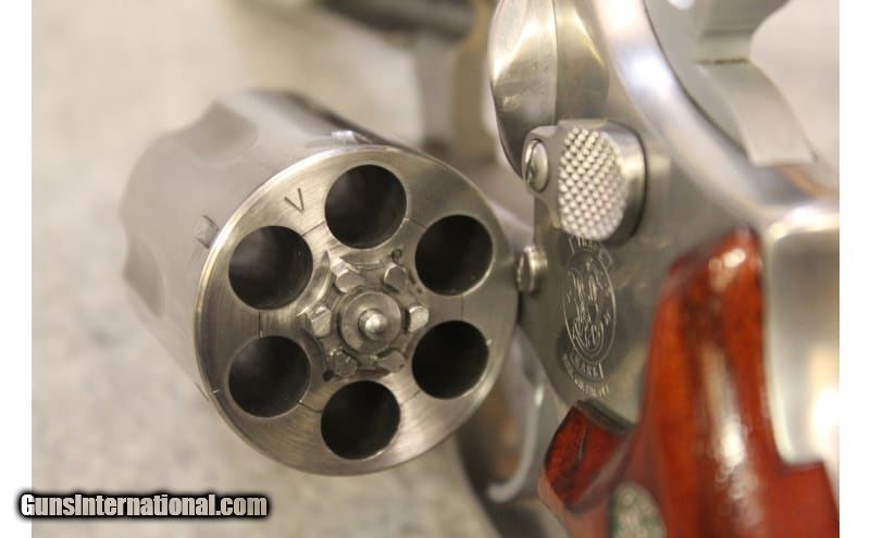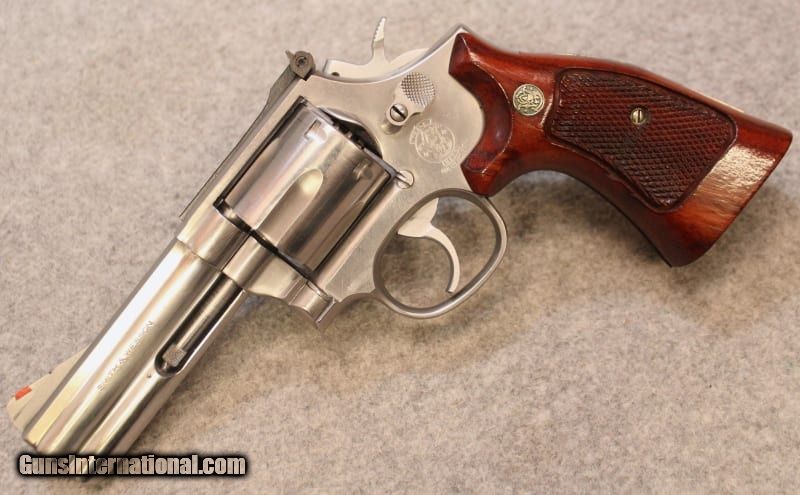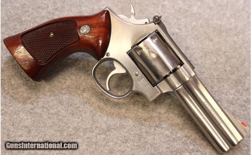 Description: This Smith & Wesson chambered in .357 Mag features, stainless finish, DA/SA trigger, adjustable rear sight, integral front sight, and Smith & Wesson wood checkered grips. .357 Mag SOLD Metal Condition: Good Wood Condition: Great Bore Condition: Bright Barrels: 4 Weight: 2.5 lbs. Item Location: Hoffman Estates, IL |