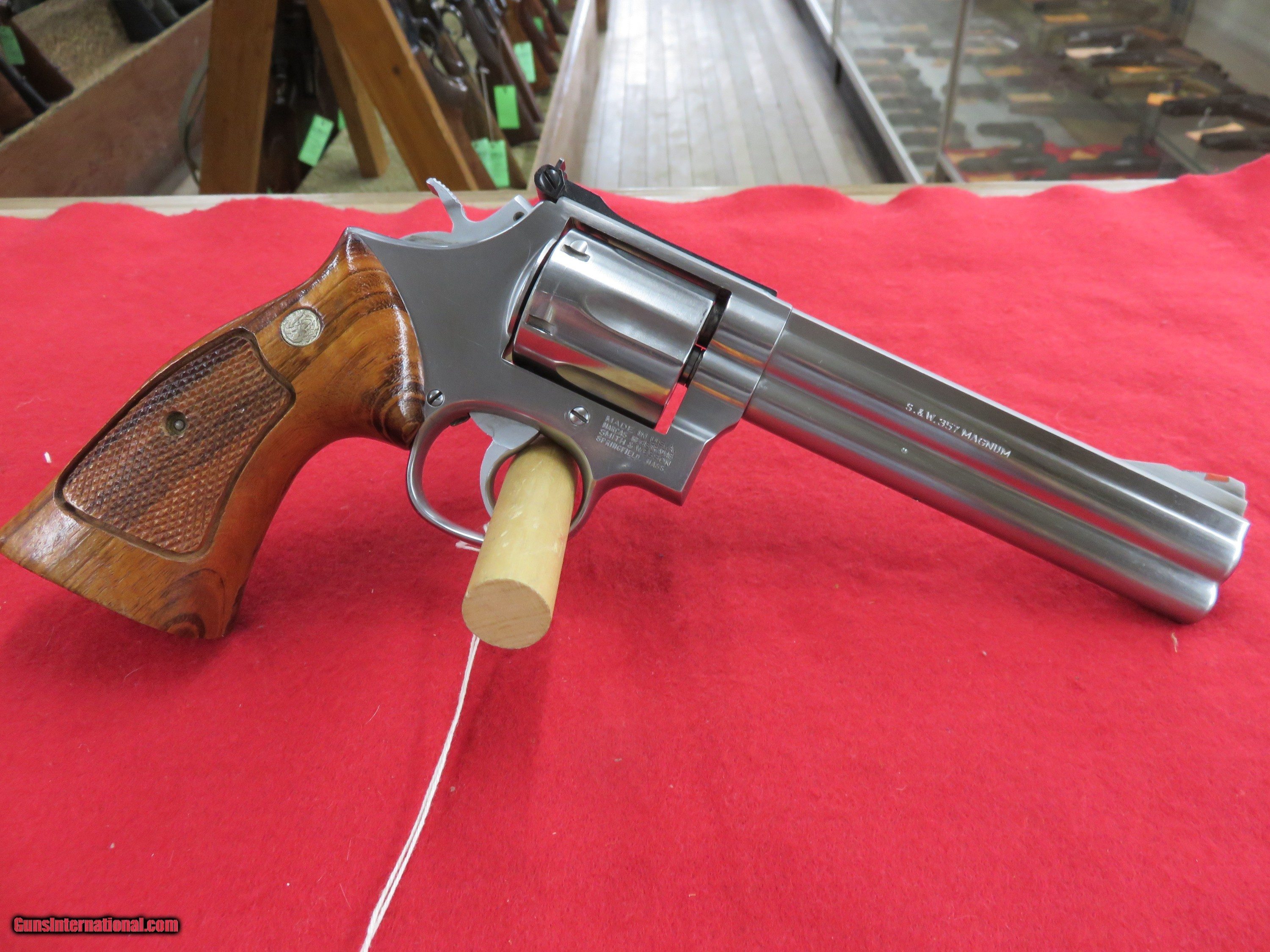 Description: Smith & Wesson 686-3, 357 Mag, 6" barrel, stainless, Smith & Wesson wood checkered grips, light turn line on cylinder, very clean gun, 98% overall condition $895.00 + $50.00 shipping SOLD |