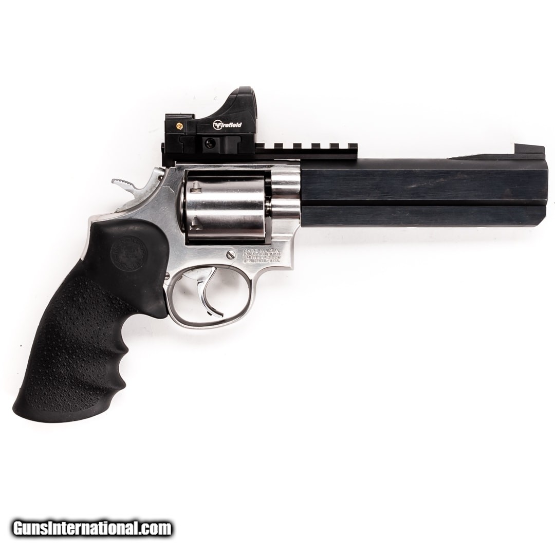 Description: Guns Listing ID: 236401 This Smith & Wesson 686-3 is a target-stopping revolver that delivers six rounds of 357 Mag. It sports a 6" barrel and a two-tone finish with a blued barrel and a stainless frame. A Clark Custom heavy barrel, a top rail with a Firefield red dot, and black rubber grips have been installed. This hard-hitting, single/double-action revolver comes with 10 moon clips. SOLD Manufacturer: SMITH & WESSON Model: 686-3 Caliber Info: .357 MAG Condition: used Barrels: 6 BARREL Finish: TWO-TONE |