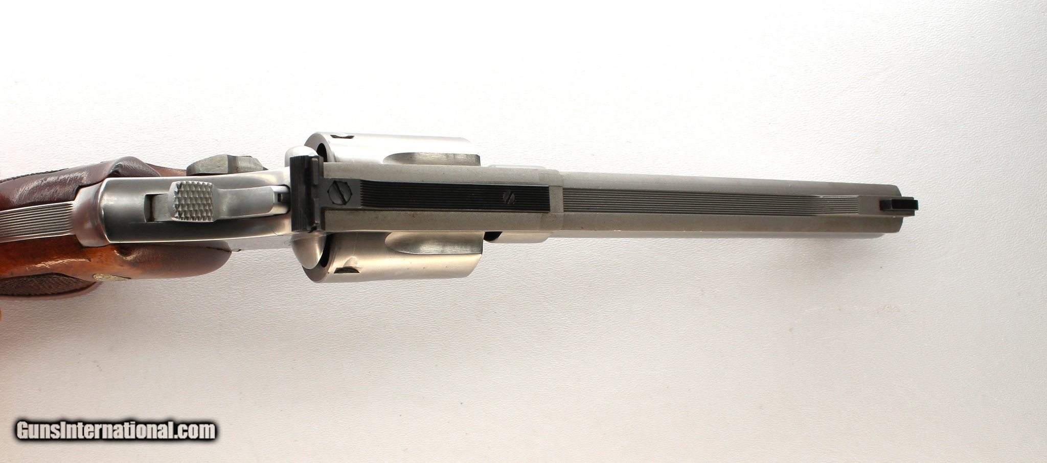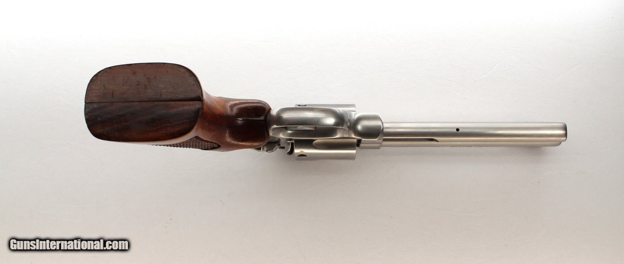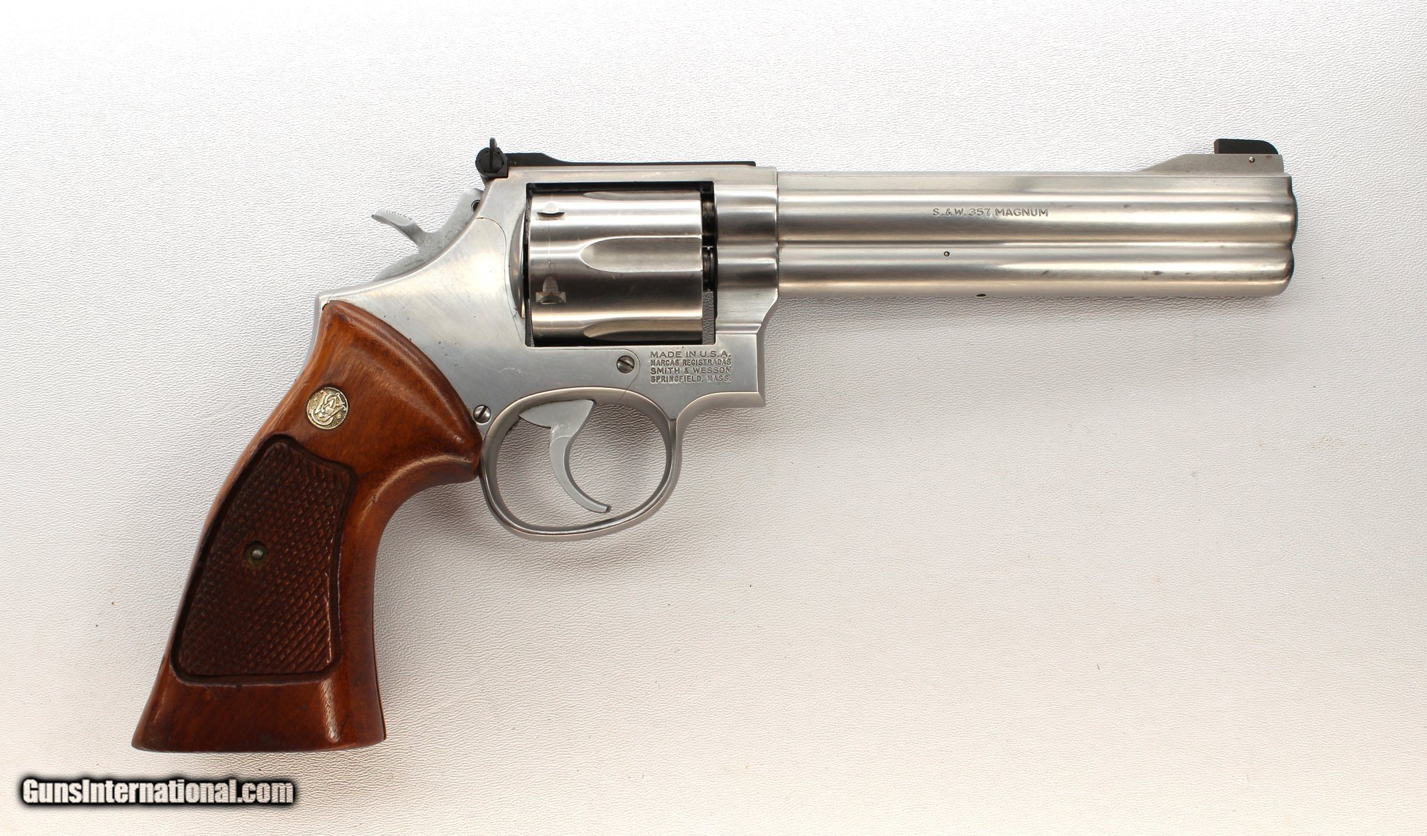 Description: Guns Listing ID: 1346905 SER#ACZ8285, 357 Magnum, 6” full lug barrel with a good bore. This Distinguished Combat Magnum remains in good condition. The stainless steel surfaces rate good with some handling marks. The smooth combat trigger and service hammer retain full hard chrome finish. The checkered goncalo alves factory target grips feature silver S&W medallions, speed loader cut, and remain in excellent condition. This gun features a ramp front sight and black blade micro adjustable rear sight. An excellent Distinguished Combat Magnum. SOLD Manufacturer: SMITH & WESSON Model: 686 Caliber Info: .357 MAG Condition: Used - Non-Certified Barrels: 6 BARREL Finish: STAINLESS |
