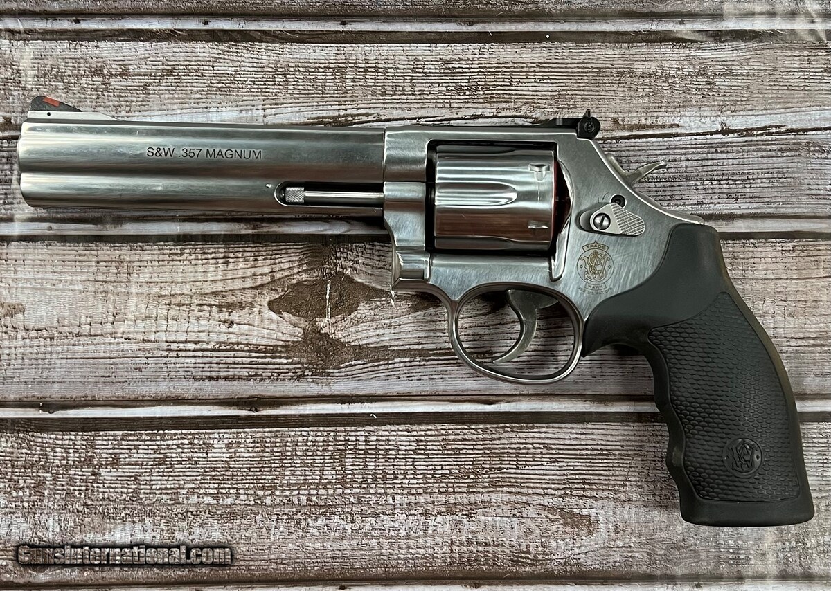 Description: Guns Listing ID: 900511 Stainless Smith & Wesson Revolver in .357 Mag / .38 Special SOLD Manufacturer: SMITH & WESSON Model: 686 Caliber Info: .38 SPECIAL/.357 MAGNUM Condition: Used - Non-Certified Barrels: 6 BARREL Finish: STAINLESS AND BLACK |