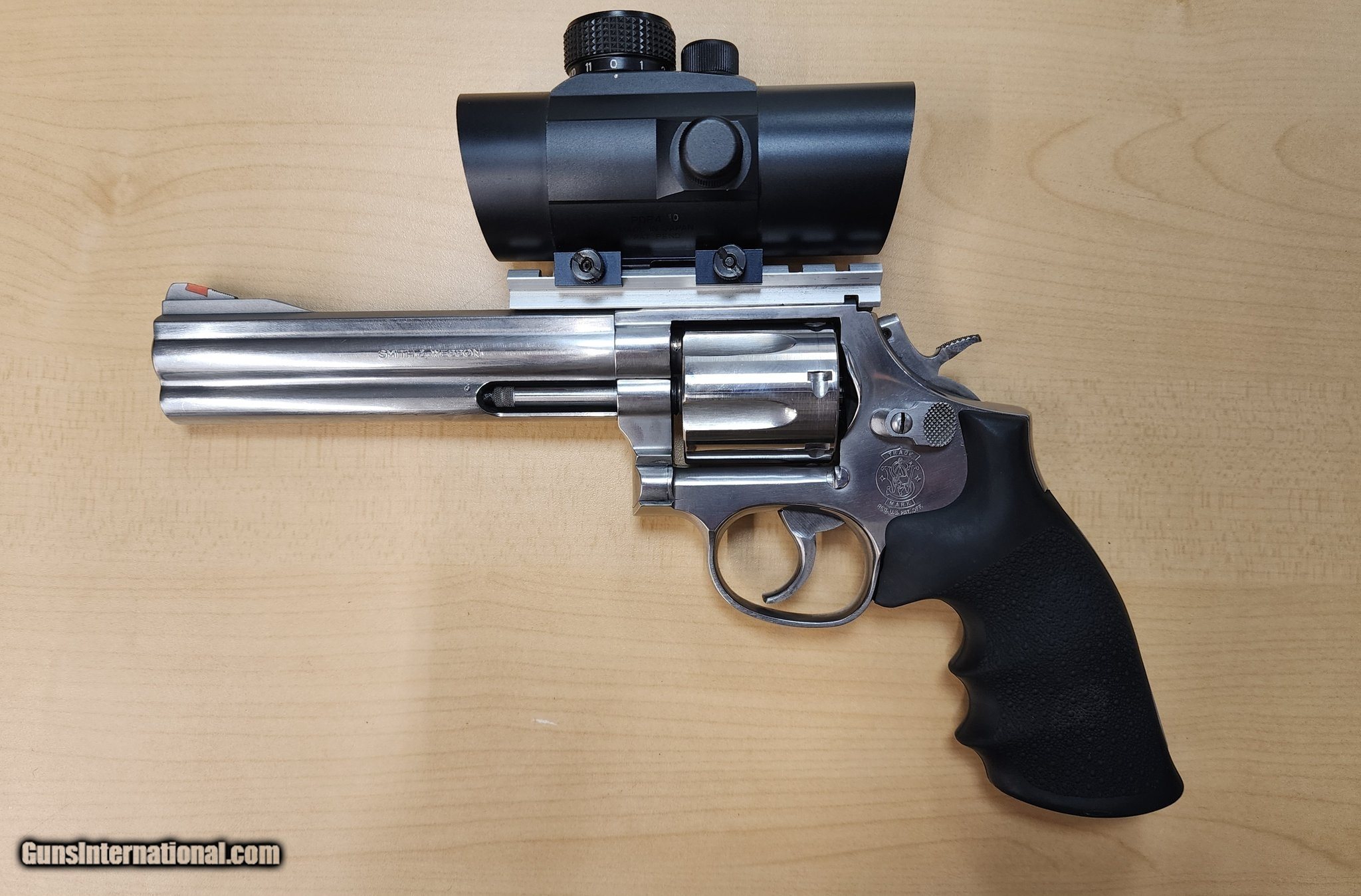 Description: Guns Listing ID: 462913 The Smith and Wesson 686-4 is a robust revolver with a 6-inch barrel, designed for exceptional accuracy and reliability. Chambered for .357 Magnum, it features a stainless steel construction that provides durability while enhancing its classic aesthetic appeal. It comes with a tasco ProPoint red dot. SOLD Manufacturer: SMITH & WESSON Model: 686-4 Condition: Used - Non-Certified Barrels: 6 Gauge Info: .44 MAGNUM Finish: stainless |