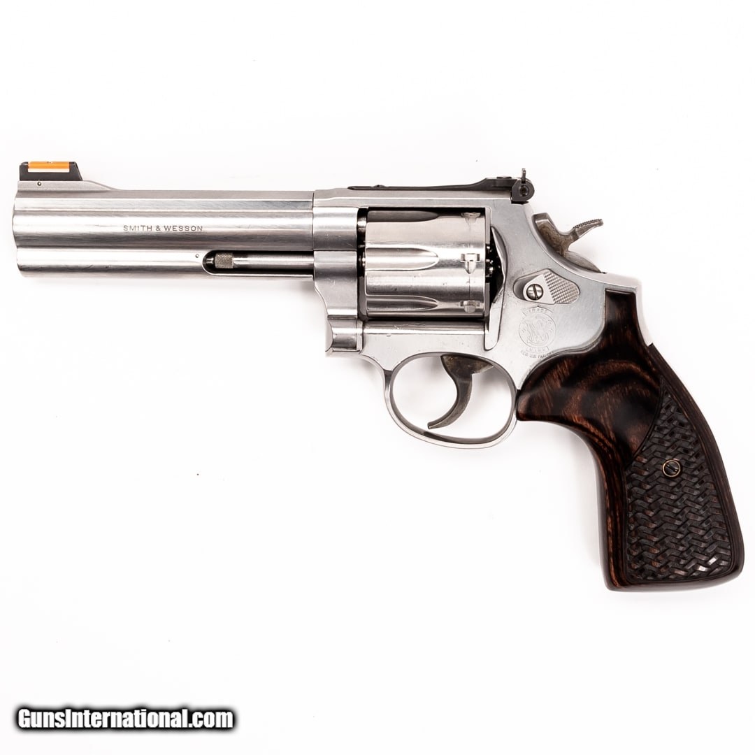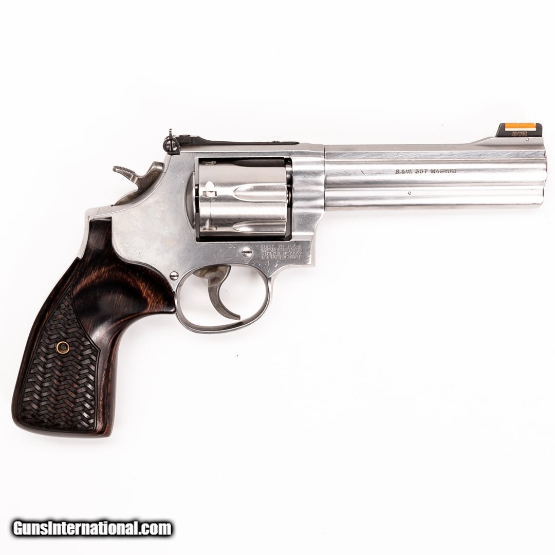 Description: Guns Listing ID: 343480 For sale is this Smith & Wesson 686-5, a target-stopping revolver that delivers seven rounds of 357 Mag. This model sports a 5" barrel and basketweave wooden grips. Well-suited for self-defense, this hard-hitting revolver is in very good condition and comes with a soft green case. SOLD Manufacturer: SMITH & WESSON Model: 686-5 Caliber Info: .357 MAG Condition: Used - Certified Barrels: 5 BARREL Finish: STAINLESS |