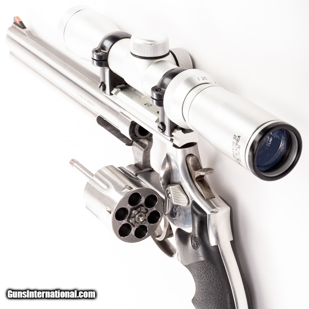 Description: Guns Listing ID: 385778 For sale is this Smith & Wesson 686-5, a target-stopping revolver that delivers six rounds of 357 Mag from a 8.25" barrel. Well-suited for hunting and self-defense, this hard-hitting revolver has a Tasco 4x28 scope. SOLD Manufacturer: SMITH & WESSON Model: 686-5 Caliber Info: .357 MAG Condition: Used - Certified Barrels: 8.25 BARREL Finish: STAINLESS |