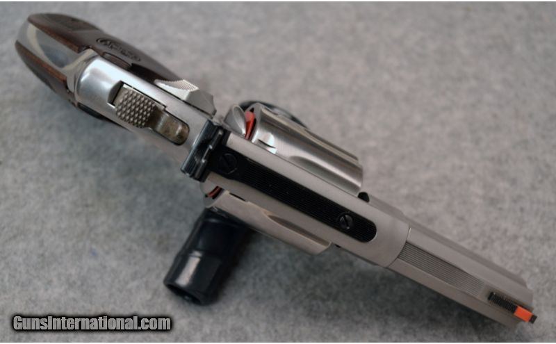 Description: This is a like new 686-6 with factory wood grips. It is in excellent condition overall with the exception of one or two spots of minor finish wear on the frame, and a ding in the left side grip. It comes with the factory case. SOLD Caliber Info: .357 Magnum Metal Condition: Excellent with one or two spots of minor finish wear Wood Condition: Excellent with one ding in the left side grip Bore Condition: Excellent Barrels: 3 Triggers: Double action/single action Stock: Smith & Wesson wood grips Sights: Front replaceable blade, rear adjustable sight Item Location: Christiana, DE |