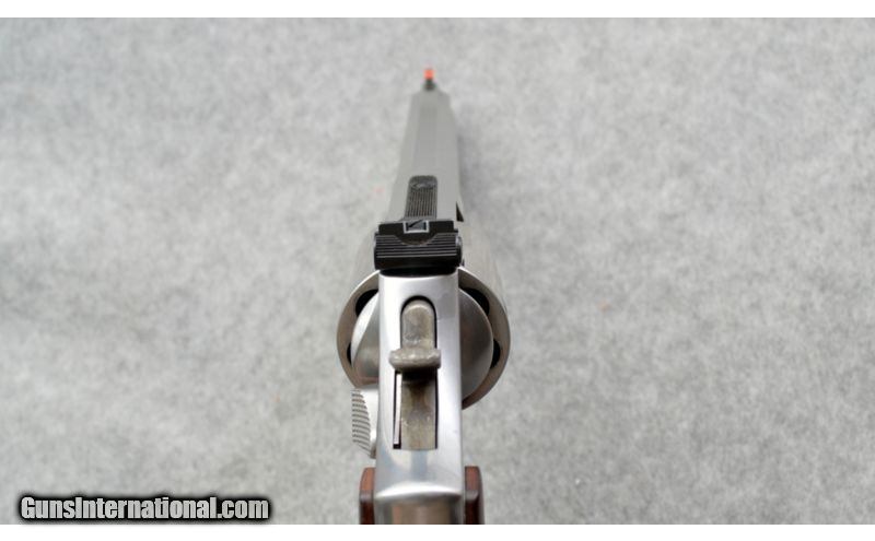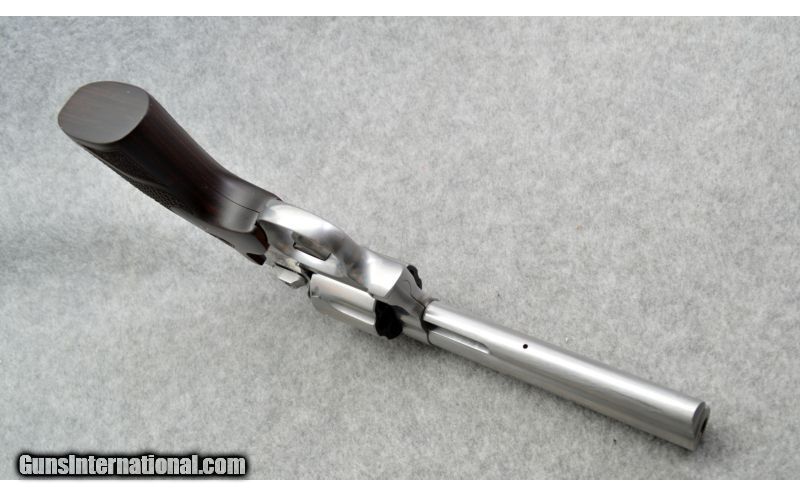Description: Smith and Wesson is known for high quality revolvers. This revolver is no exception. The stainless steel is durable and will keep its condition very well over regular blued steel. The six-inch barrel is a good choice for accuracy and comfort shooting at the range. It’s in overall very good condition. SOLD Caliber Info: .357 Magnum Chambers: 7 Metal Condition: Excellent with a few light usage/handling marks present. Theres a light cylinder line developing. Wood Condition: Excellent Bore Condition: Excellent, bright and sharp Barrels: 6 Inches Triggers: SA/DA Weight: 2.8 Lbs. Sights: Front blade with adjustable rear notch Extras: Original Box included Item Location: Farmington, UT |
