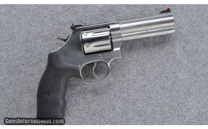 Description: SOLD Caliber Info: .357 Smith & Wesson Magnum (.38 Special ) Chambers: 7 round cylinder Metal Condition: Satin Stainless shows some fine scratches Bore Condition: Bright and sharp Barrels: 4" Full Underlug Triggers: Single / Double Action Stock: Rubber with S&W logo Weight: 40 oz Sights: Red Ramp Front, Micro Adjustable Leaf Rear Extras: Factory Case with literature Item Location: Grand Junction, CO |